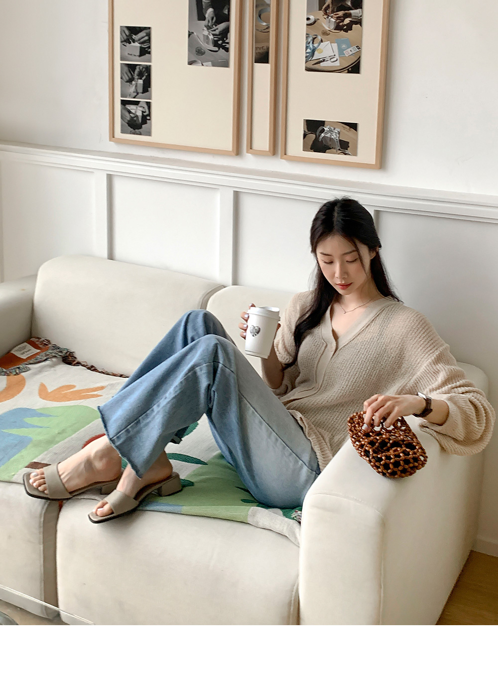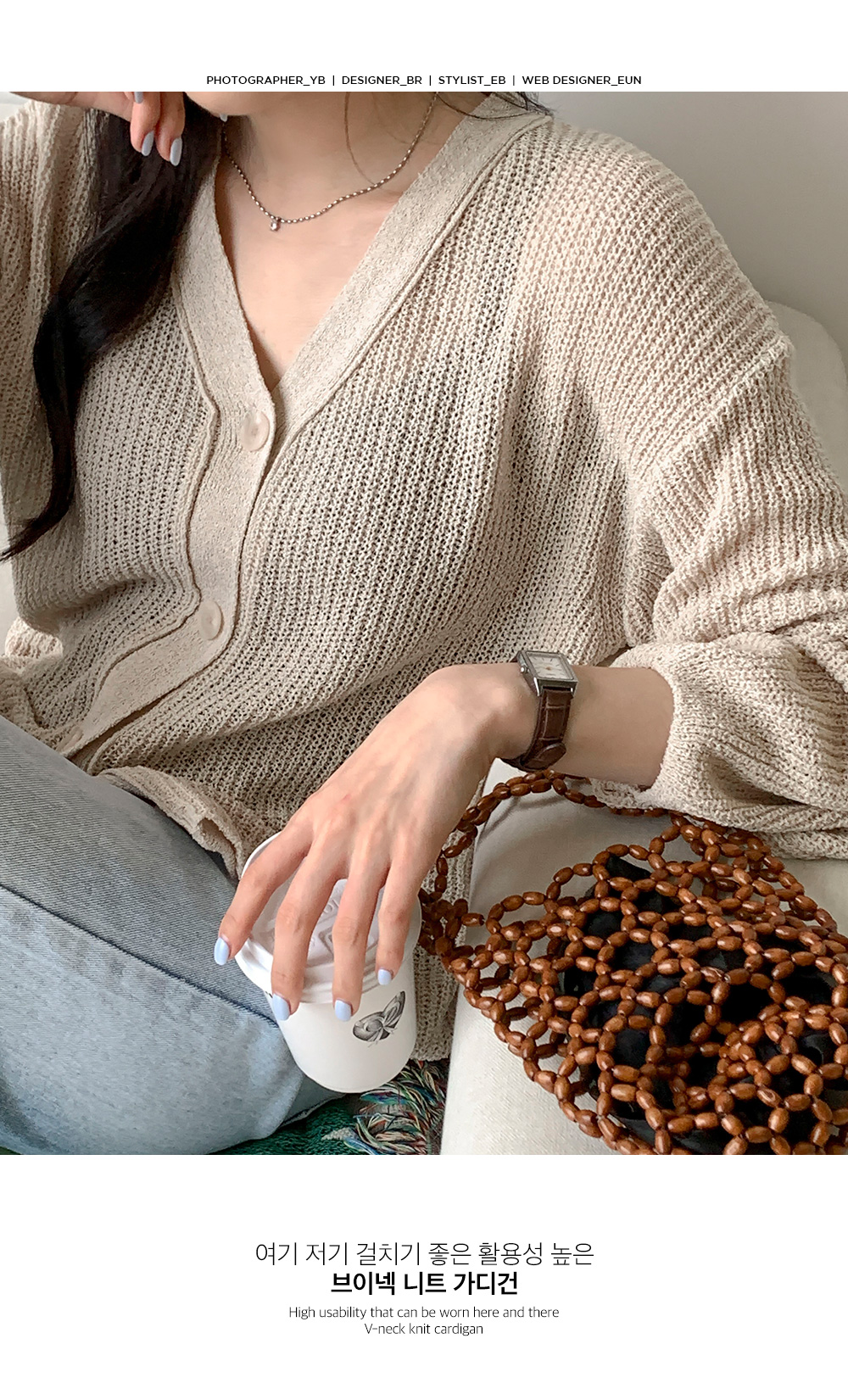 あちこちに羽織りやすい活用性の高いブイネックニットカーディガン