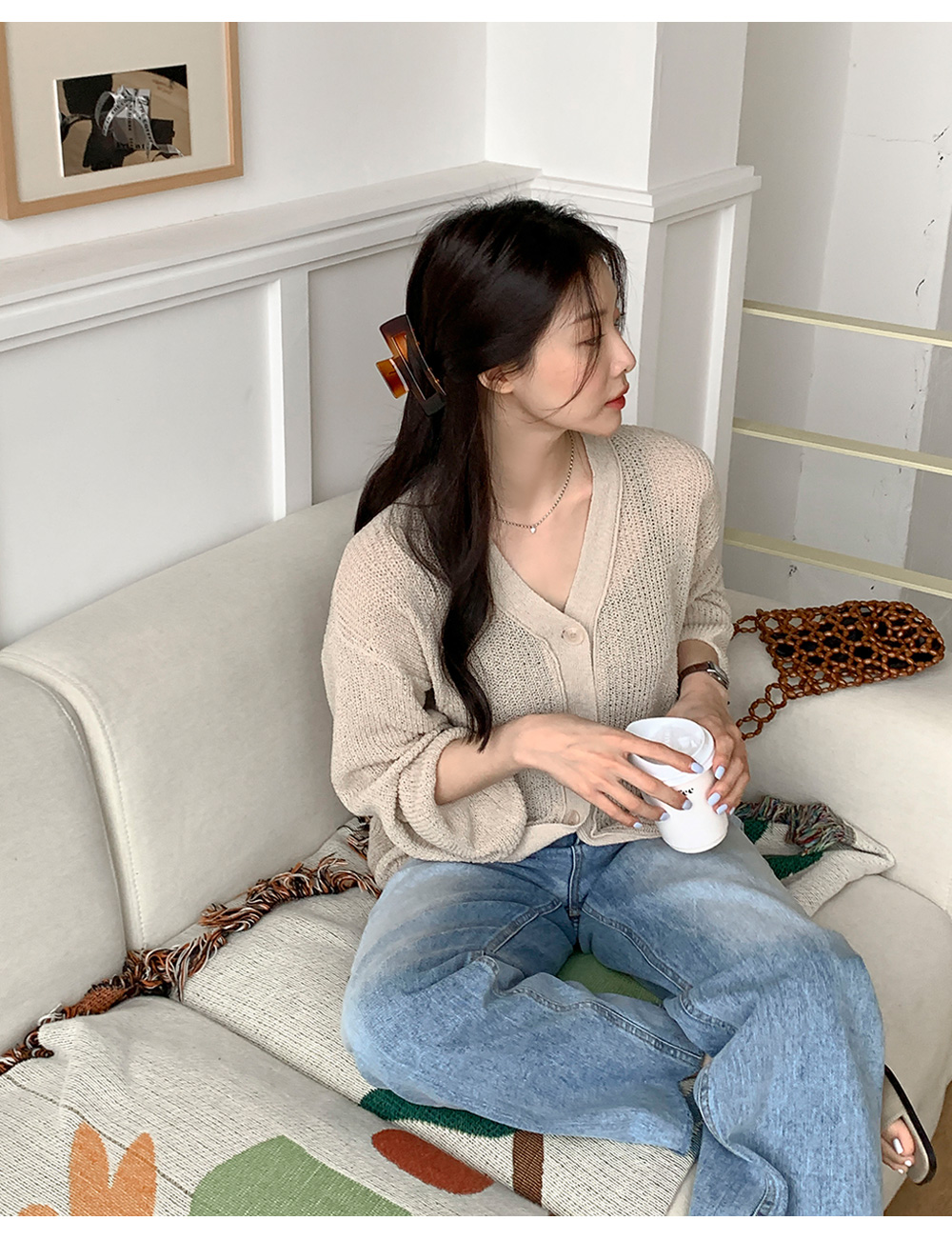 1.夏専用の原糸で夏にも羽織りやすいカーディガン