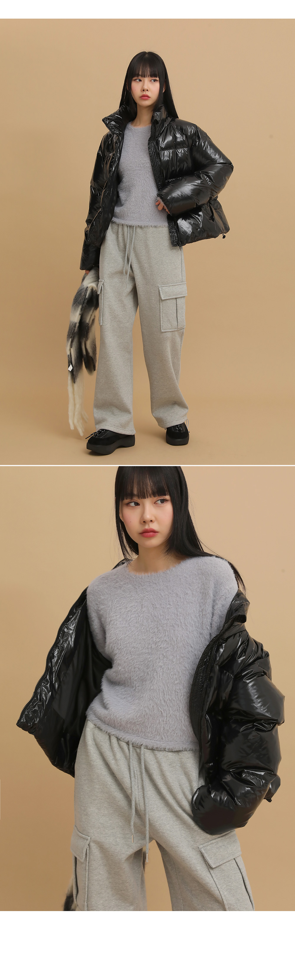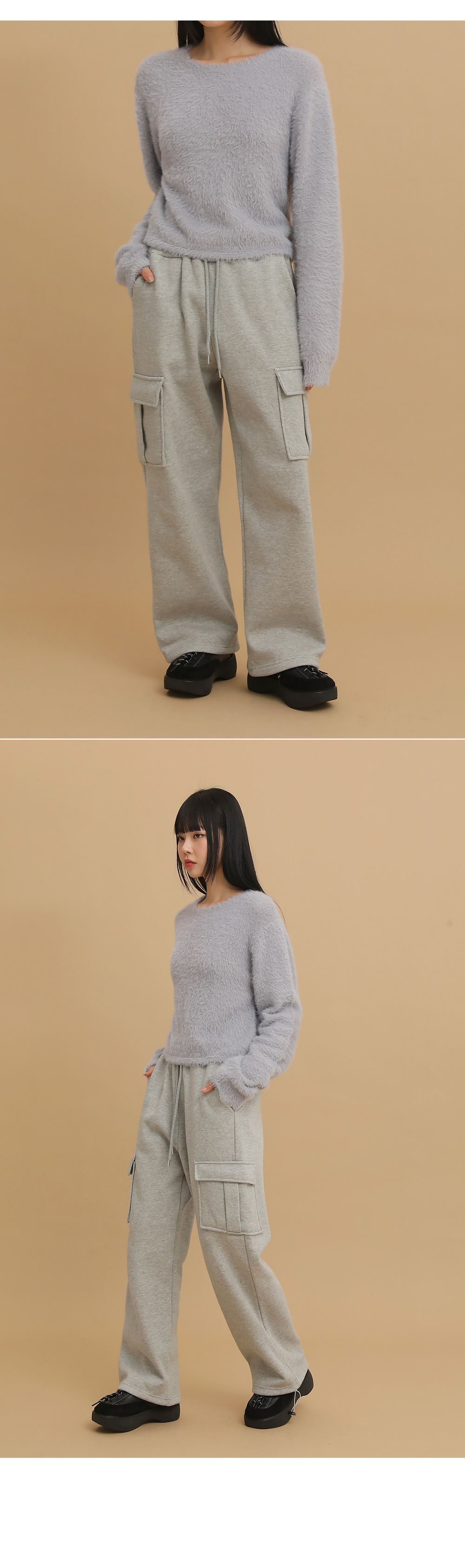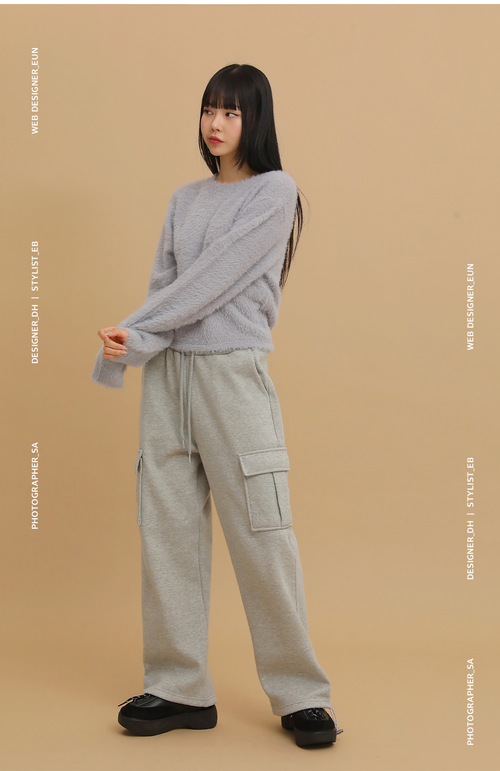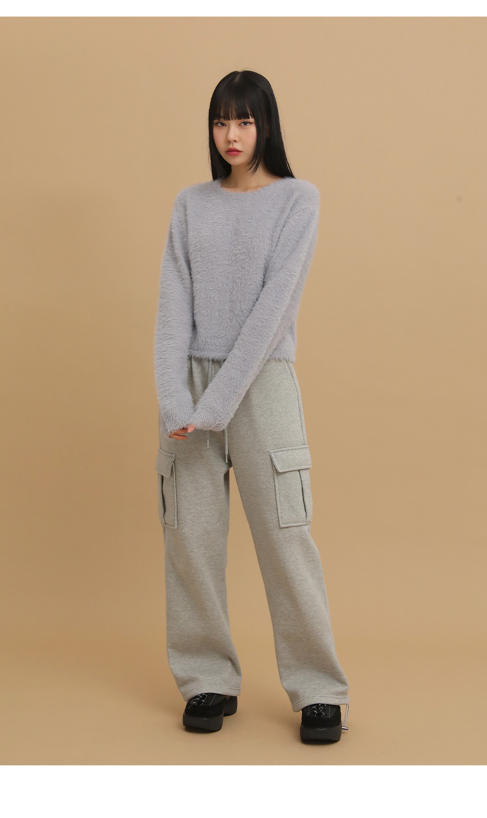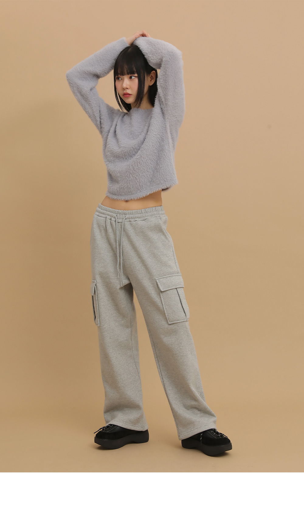 ①クロップド丈で脚長効果&余裕のあるイージーフィット