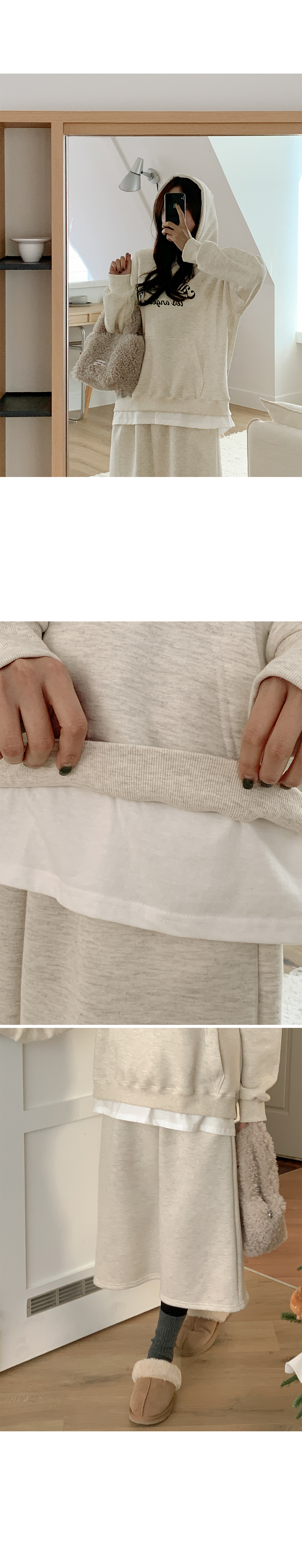 덴프 起毛 レイヤード フード  ロング スカート セットアップ 79868