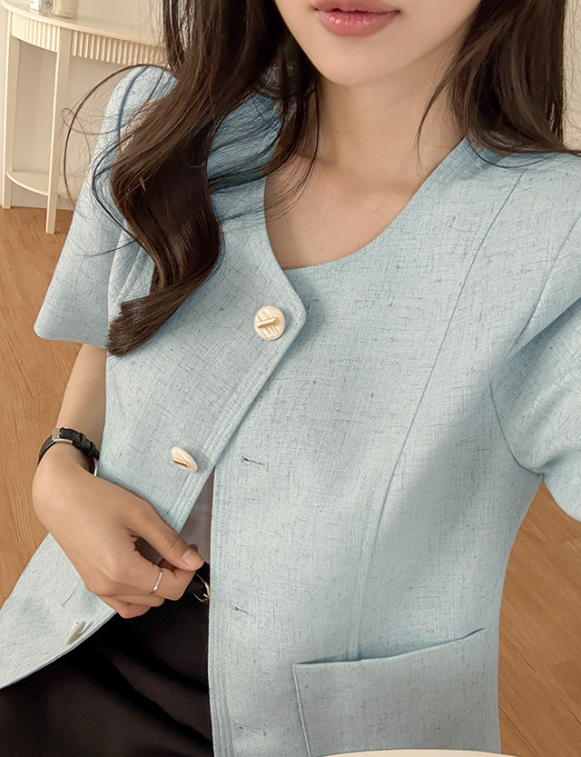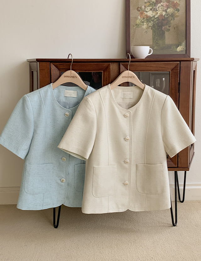 페미닌한 무드의 트위드 린넨 반팔 자켓