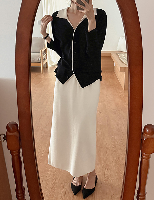 • [2가지기장]버터링 ゴム Hライン スリット ニット スカート 83824