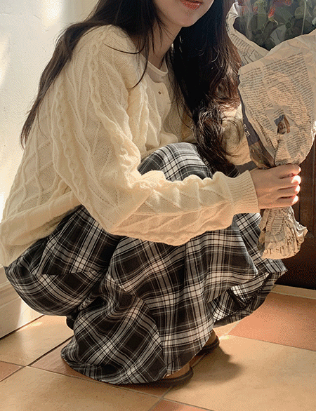 살랑 チェック 뒷밴딩 머메이드 ロング スカート 83797