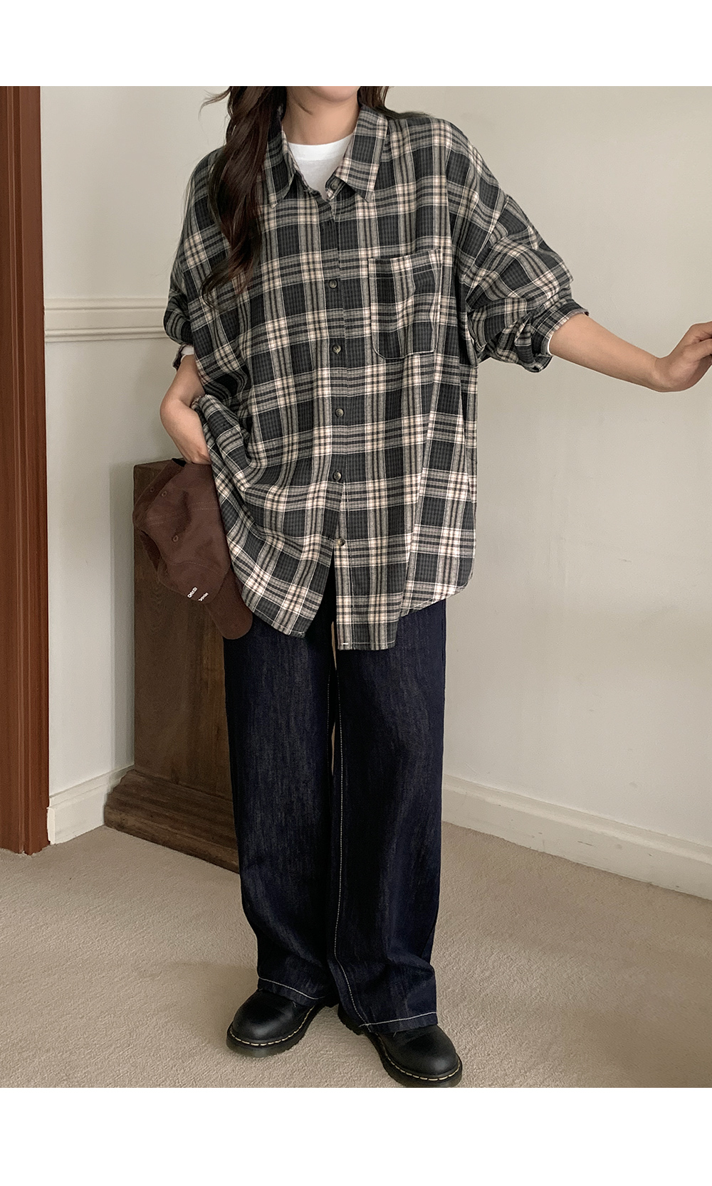 편안하게 착용할 수 있는 체크 셔츠입니다.