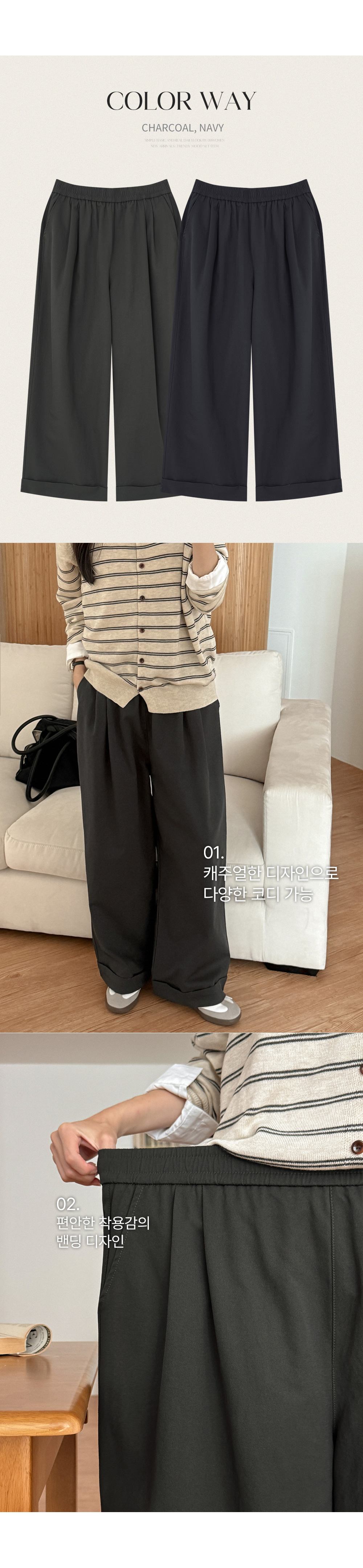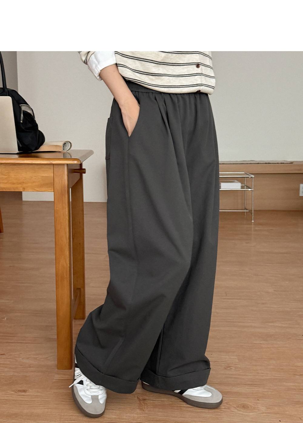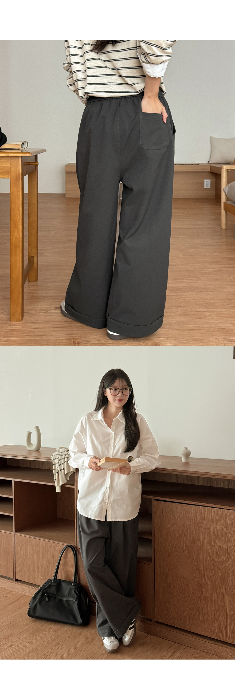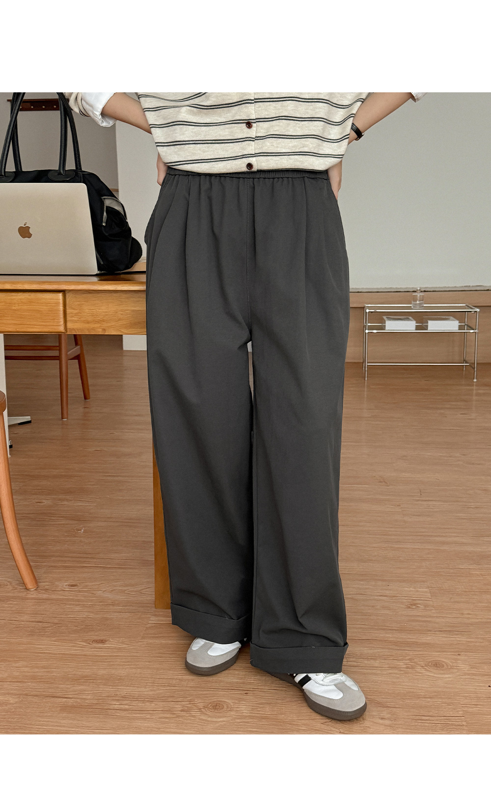 [09초이스] 깔끔 완벽 ロールアップ ゴム ワイド パンツ 83862