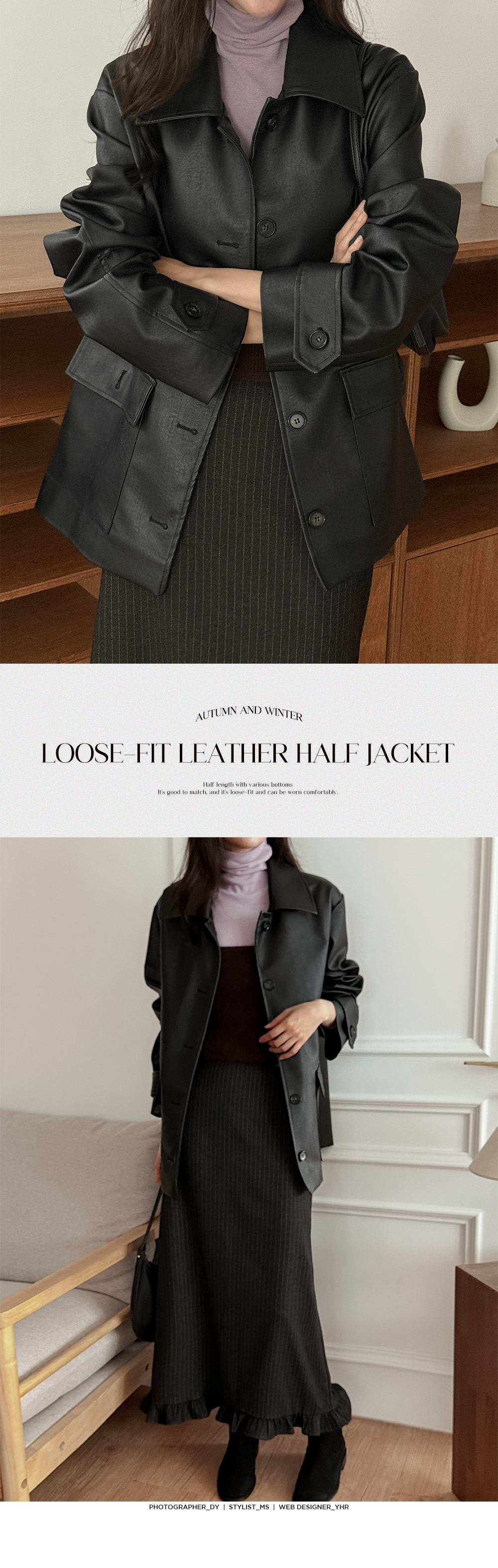 봉쥬르 ルーズフィット 레더 ハーフ ジャケット 84463