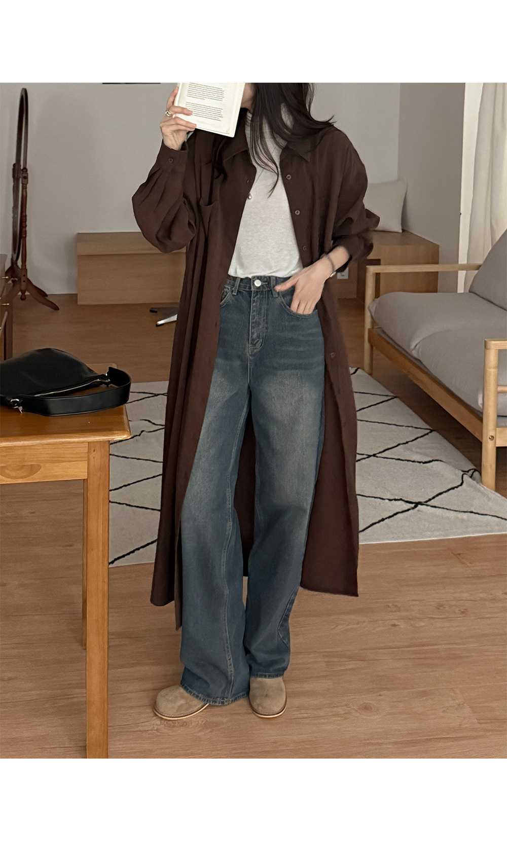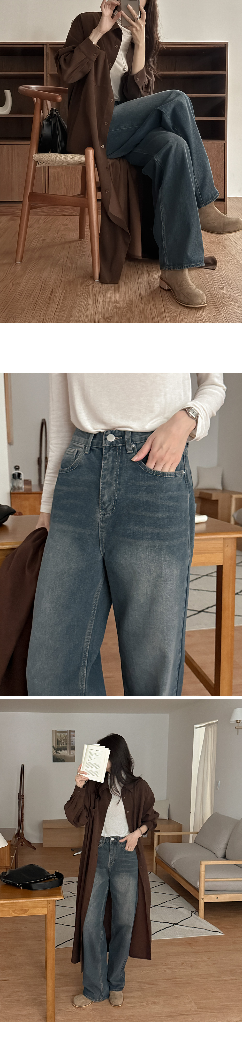 데일리로 즐기기 좋은 워싱 와이드 데님 팬츠