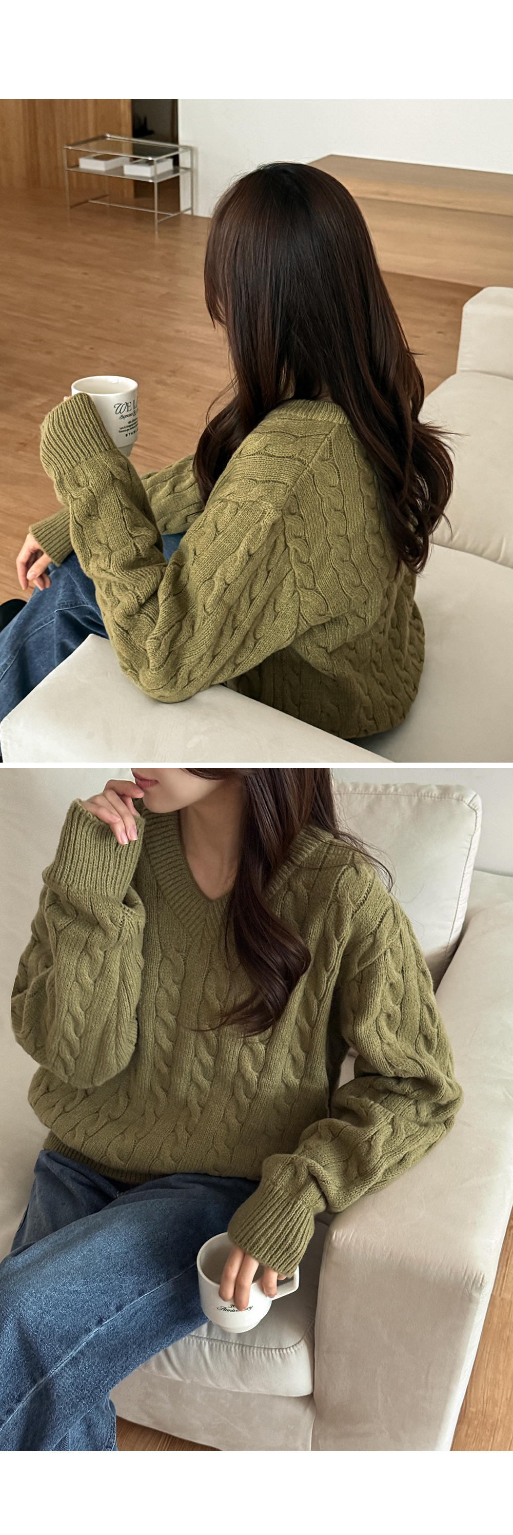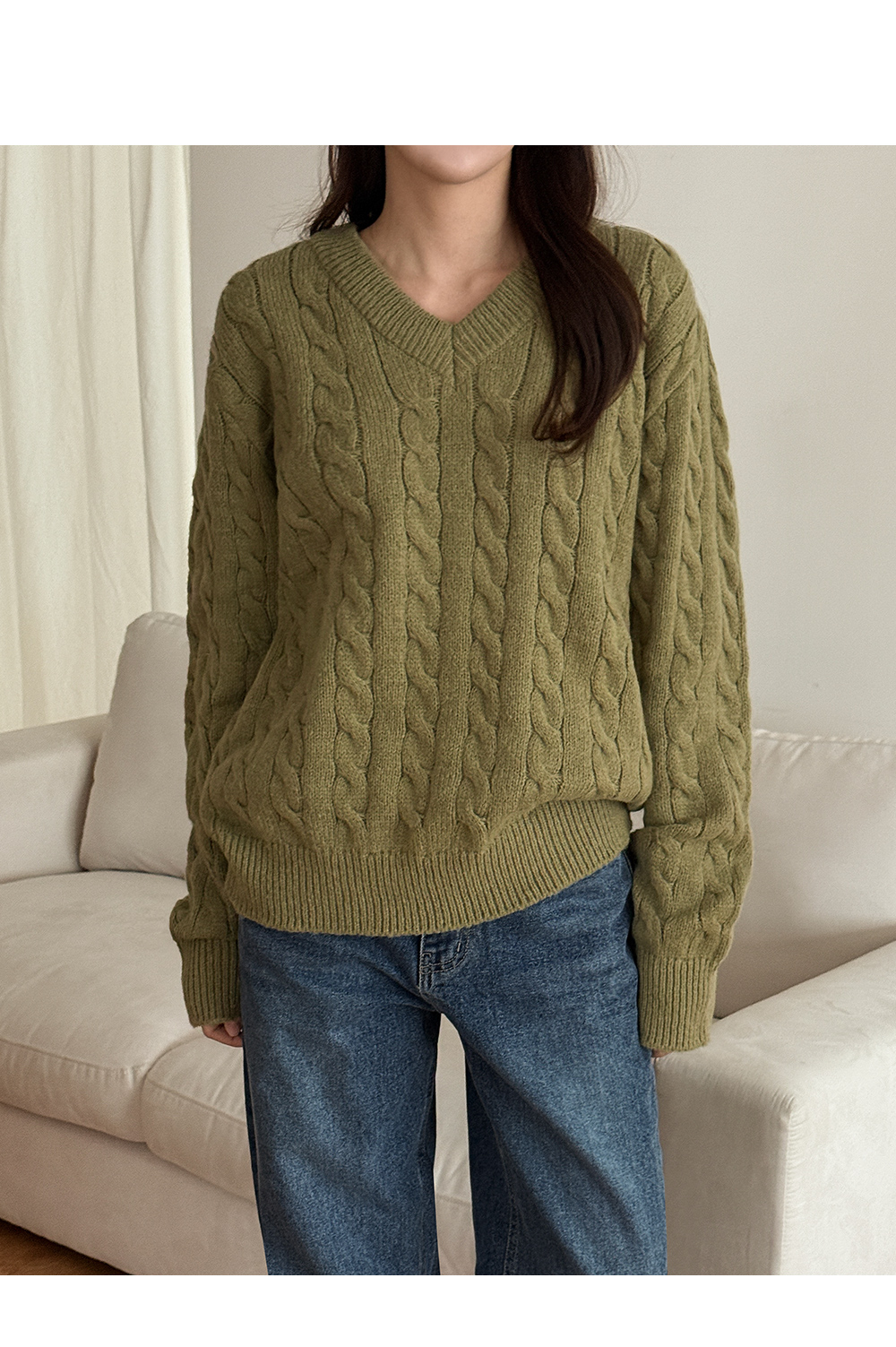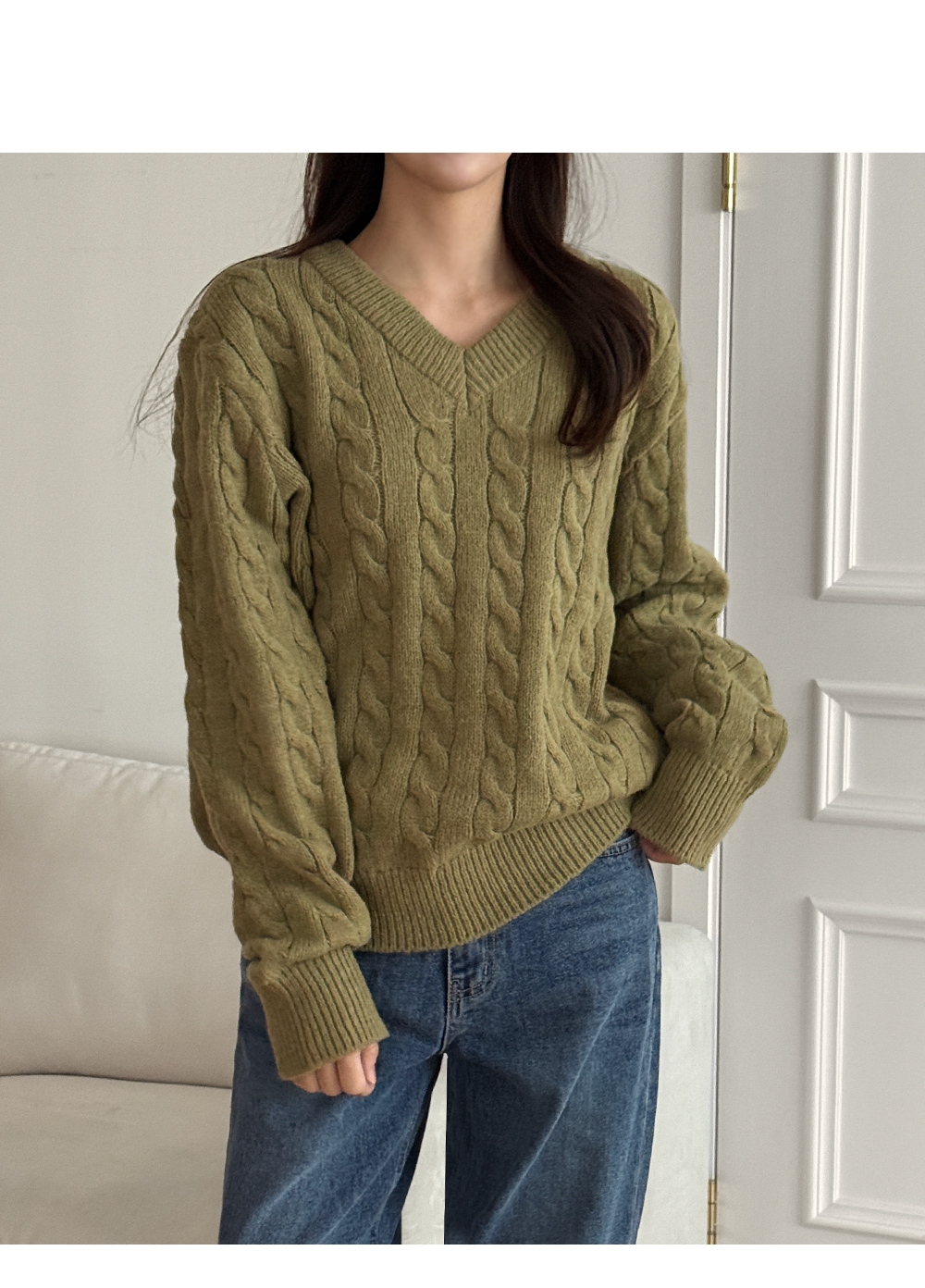 베로스 ケーブル編み カラー Vネック ニット 84617