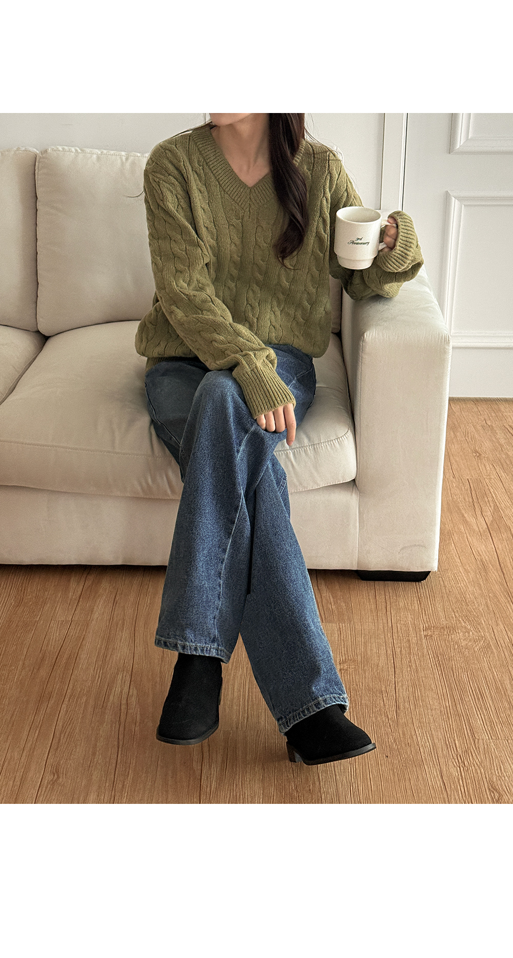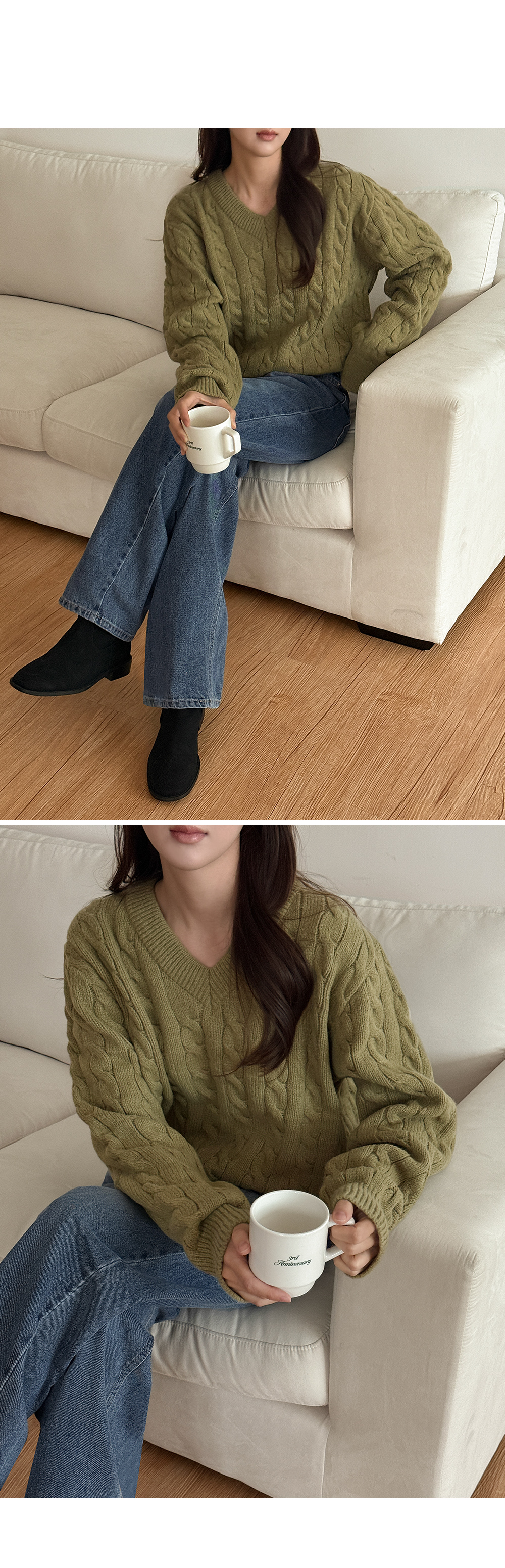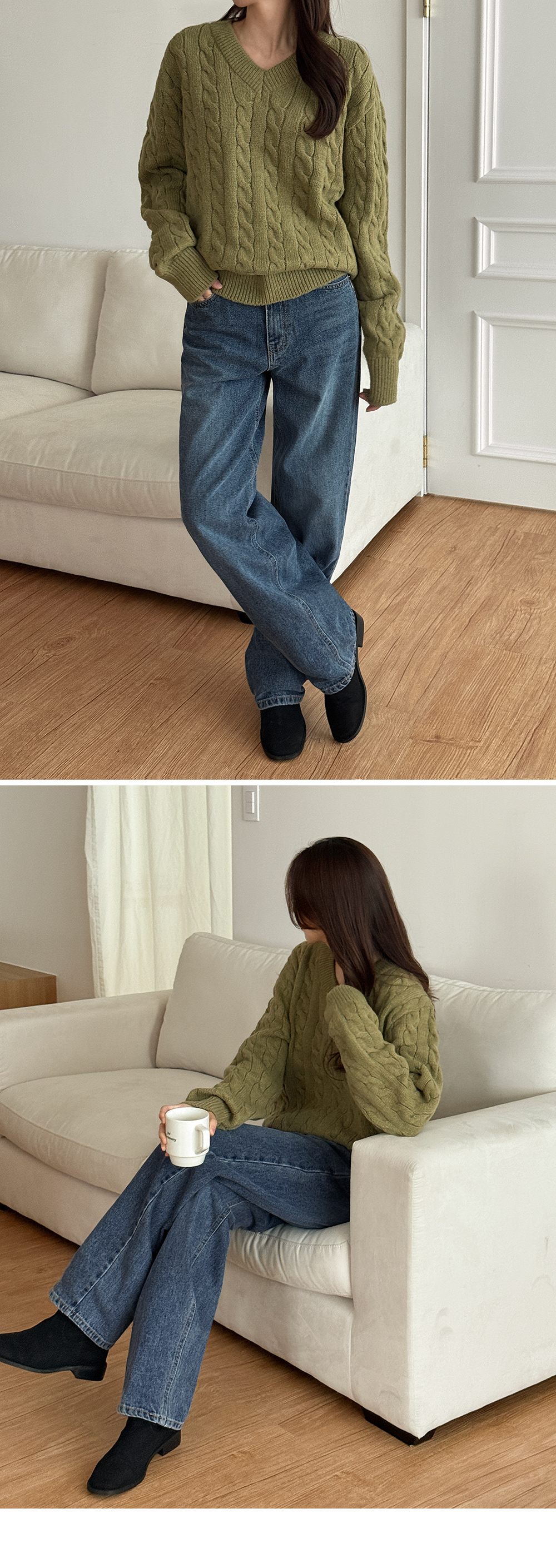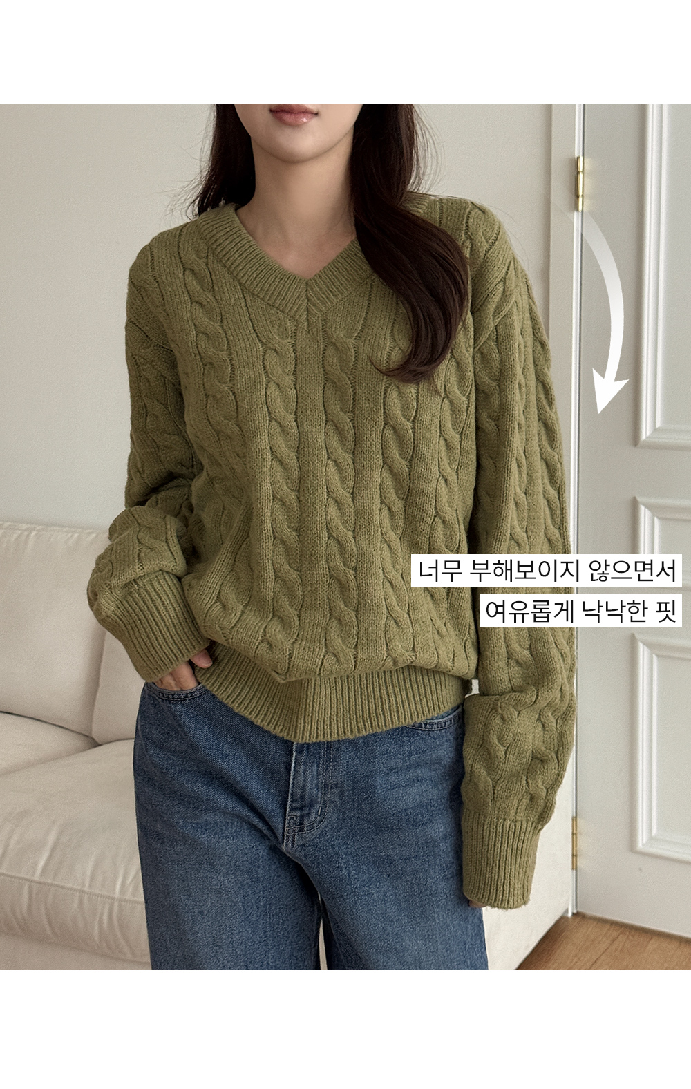 베로스 ケーブル編み カラー Vネック ニット 84617