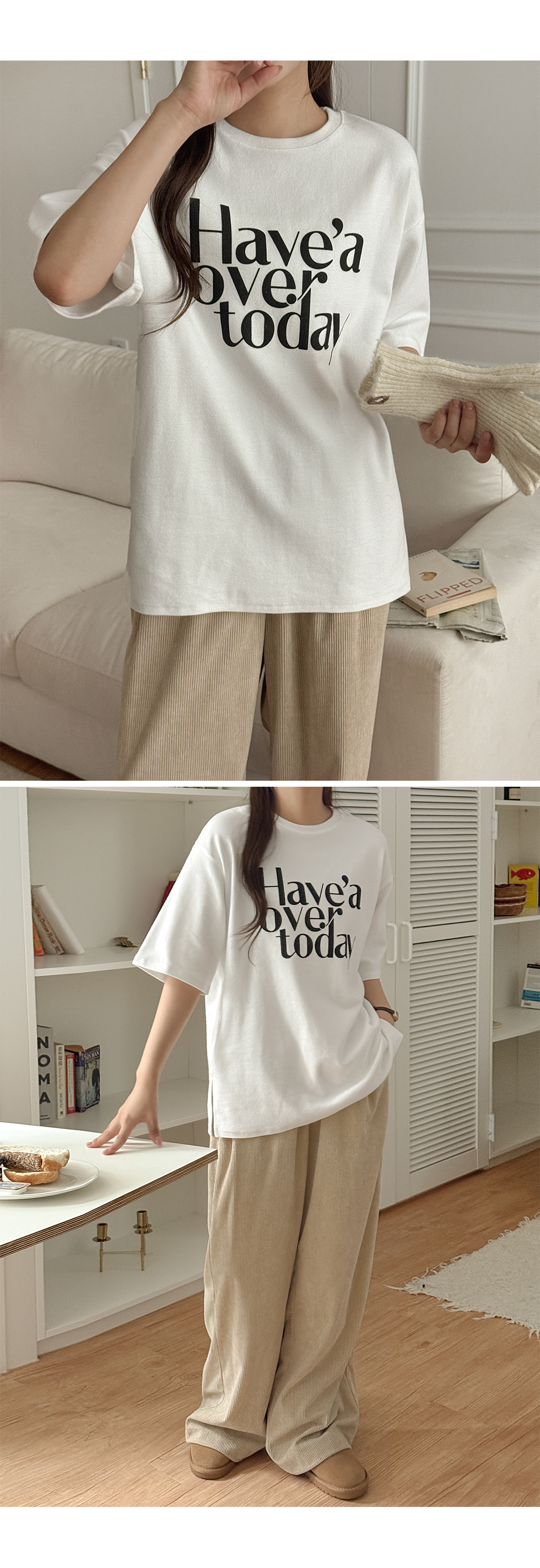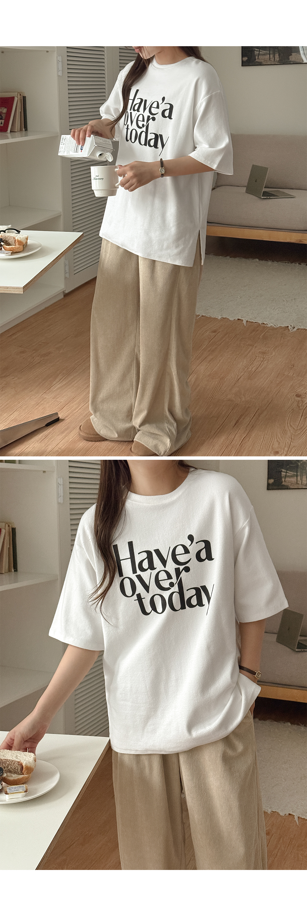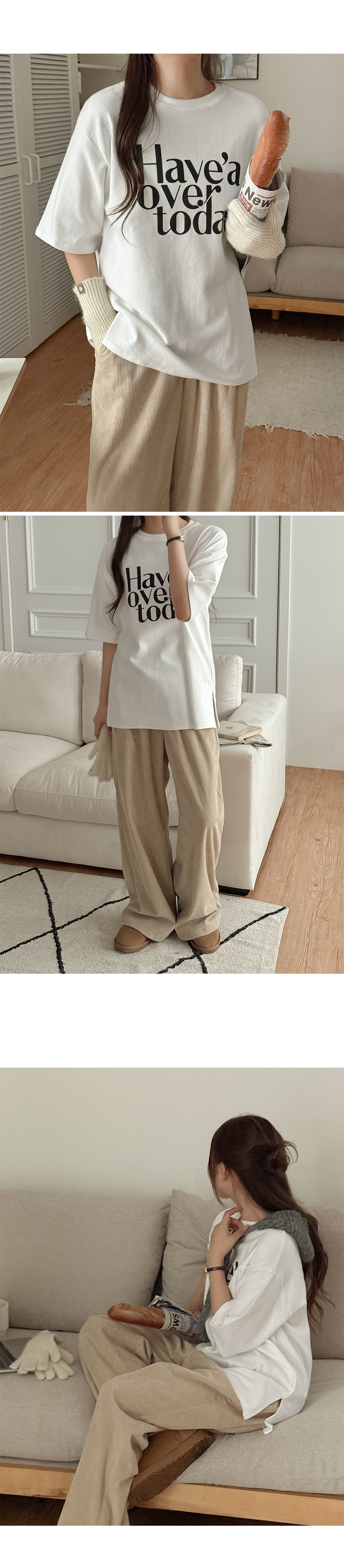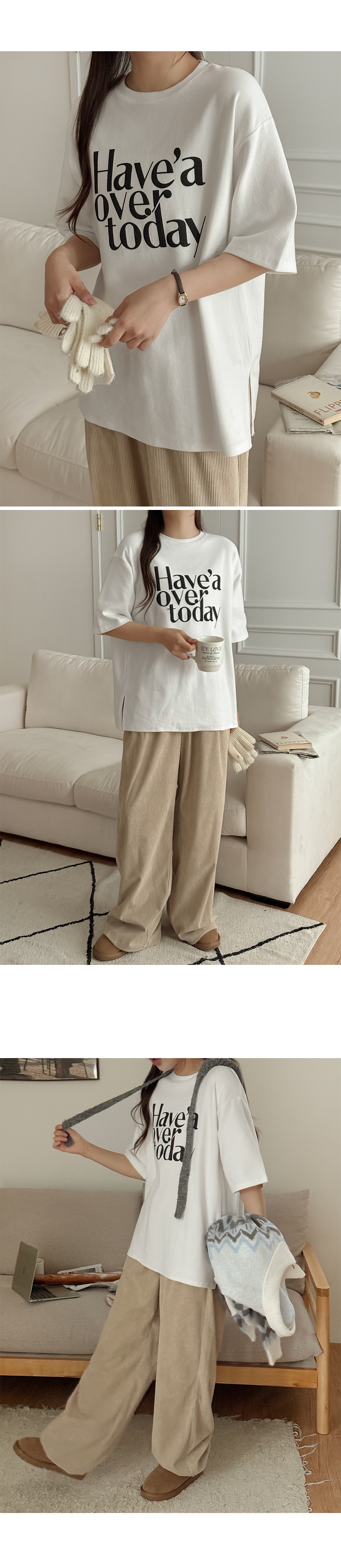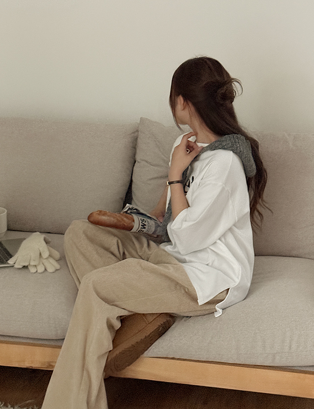 데일리한 무드의 코디가 완성되는 피치 기모 티셔츠