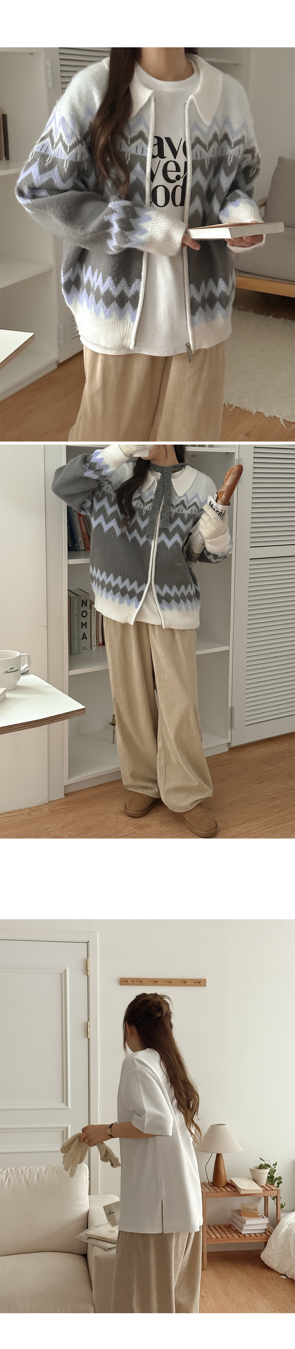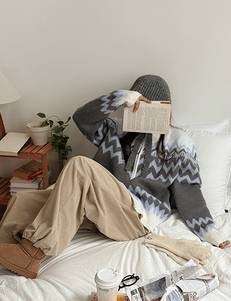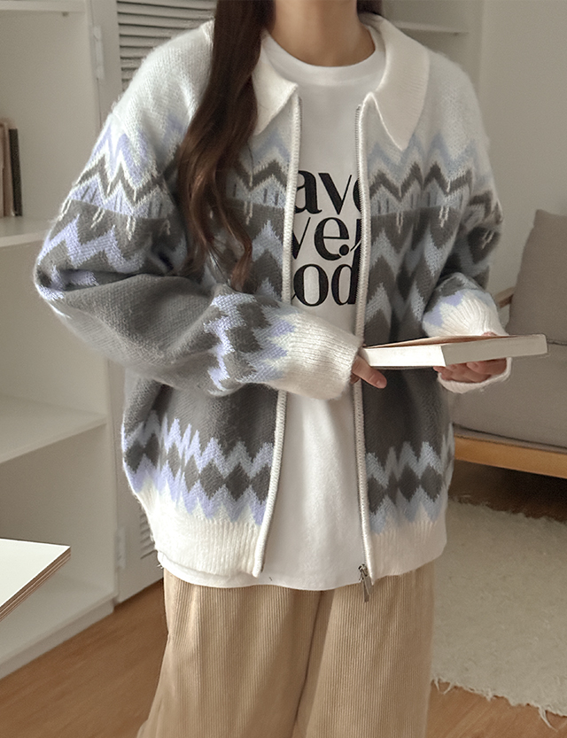 • 루프시 자가드 2way ジップアップ ニット 84475