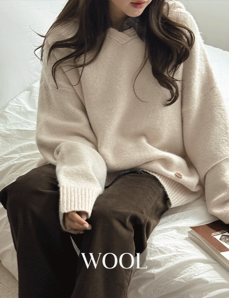 로에니 Vネック ルーズフィット フード ウール ニット 84644