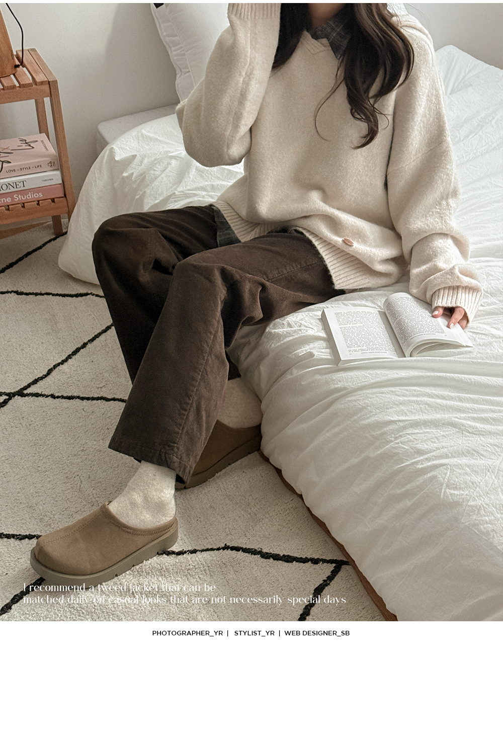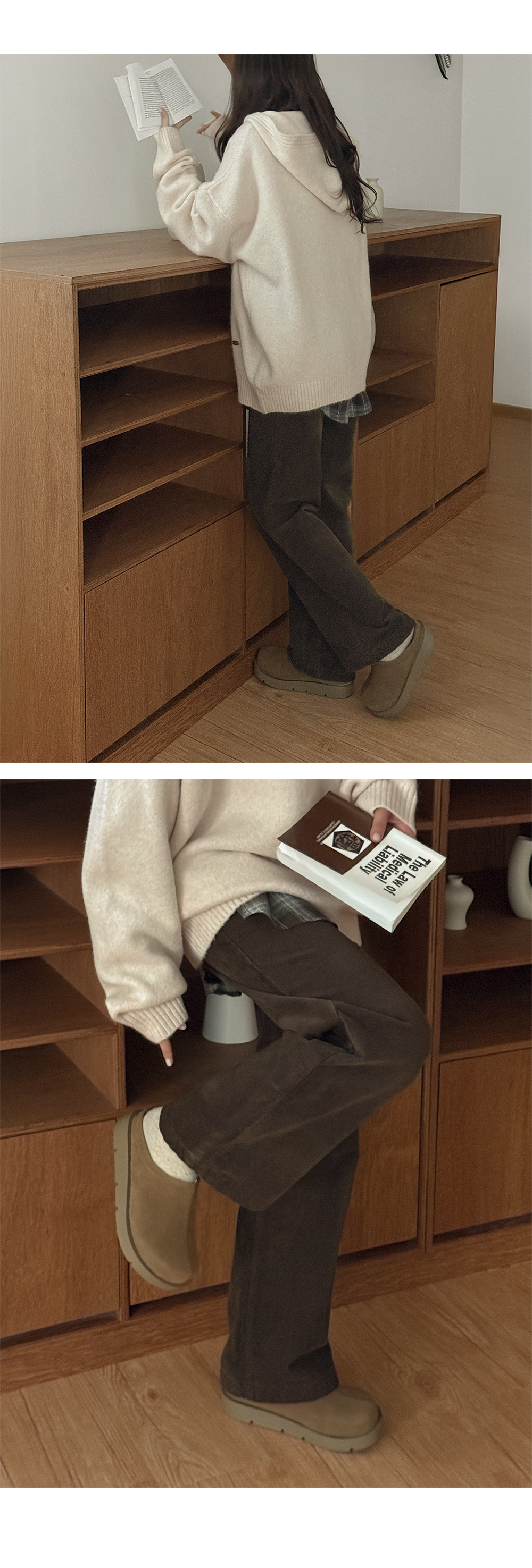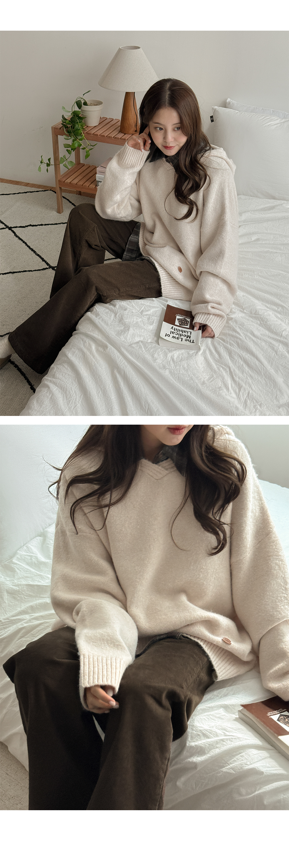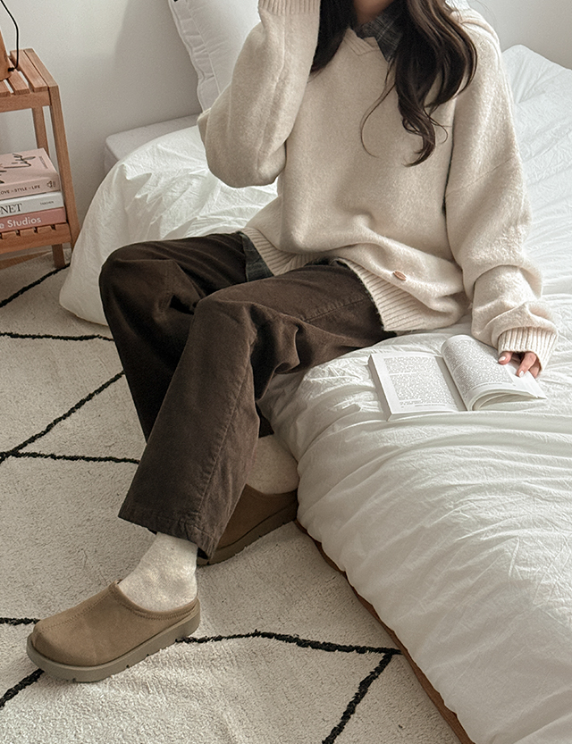 로에니 Vネック ルーズフィット フード ウール ニット 84644