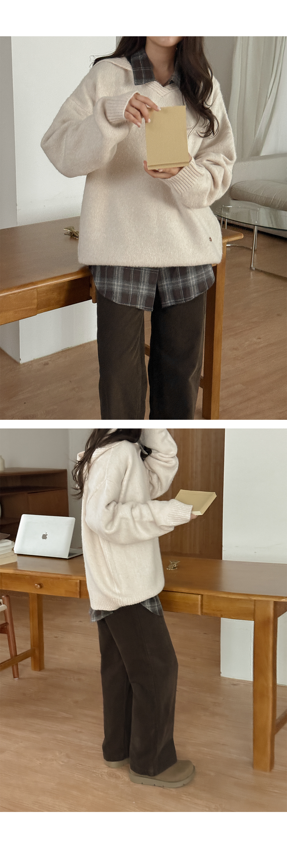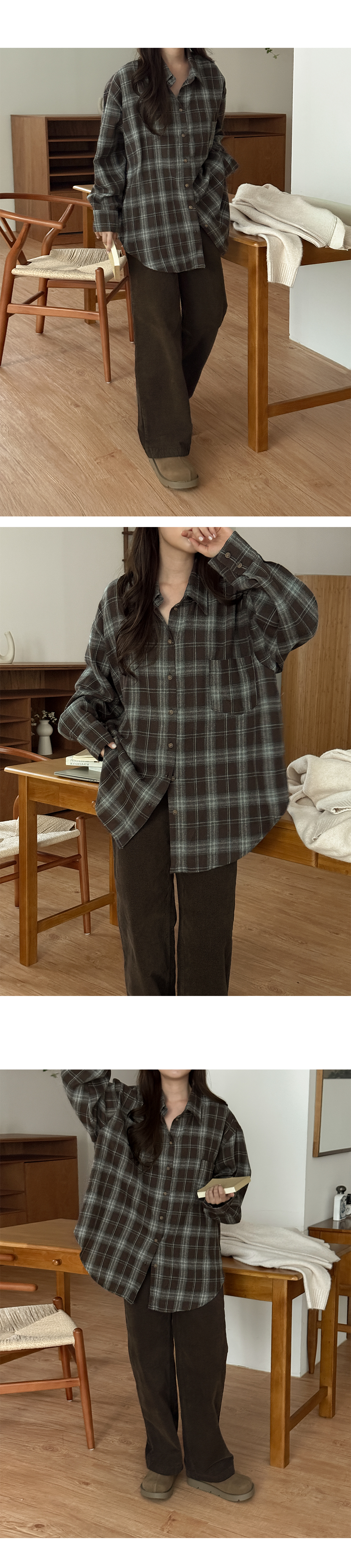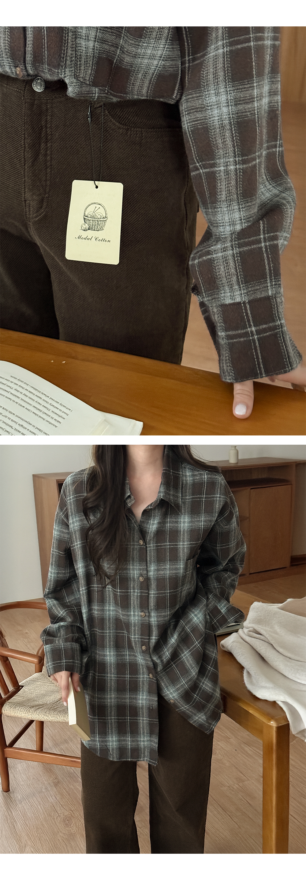 모츠븐 ピーチ ルーズフィット チェック シャツ 84650
