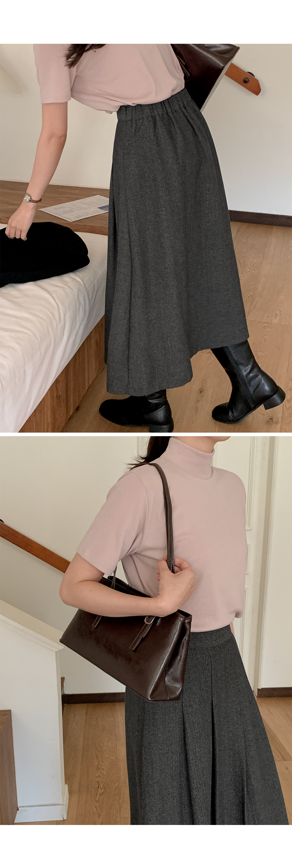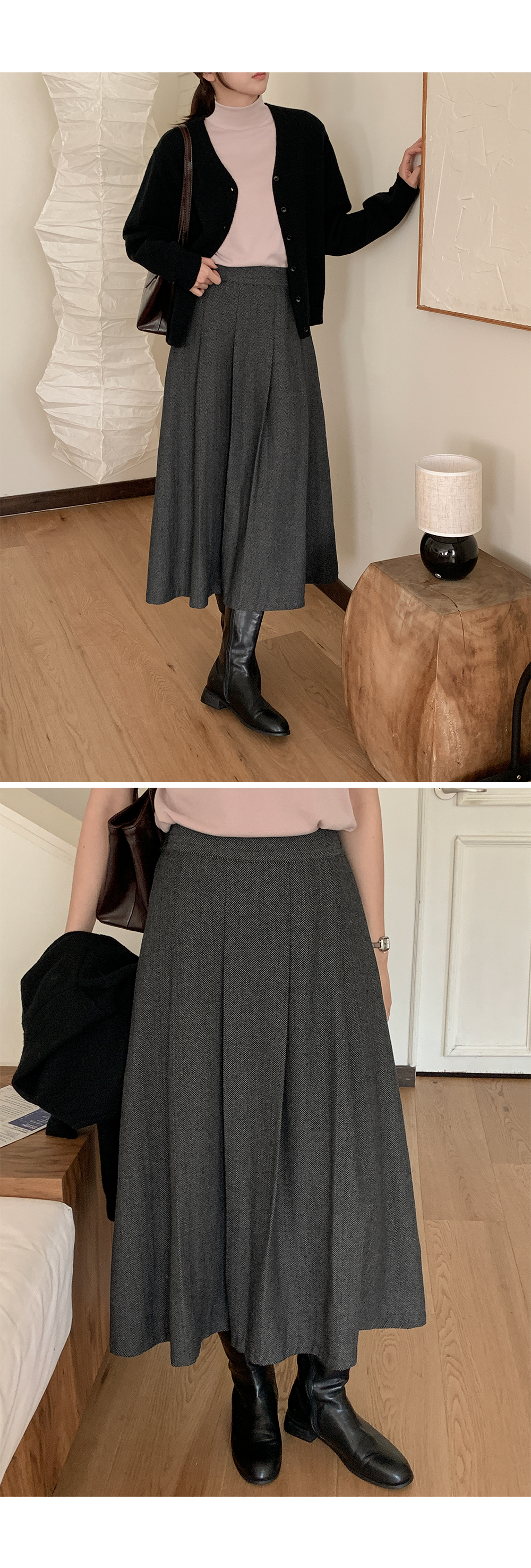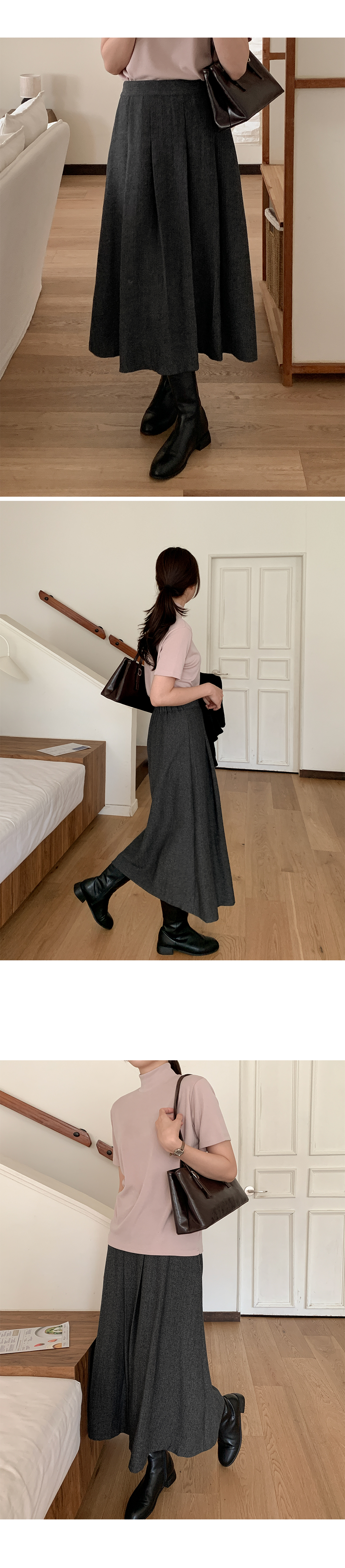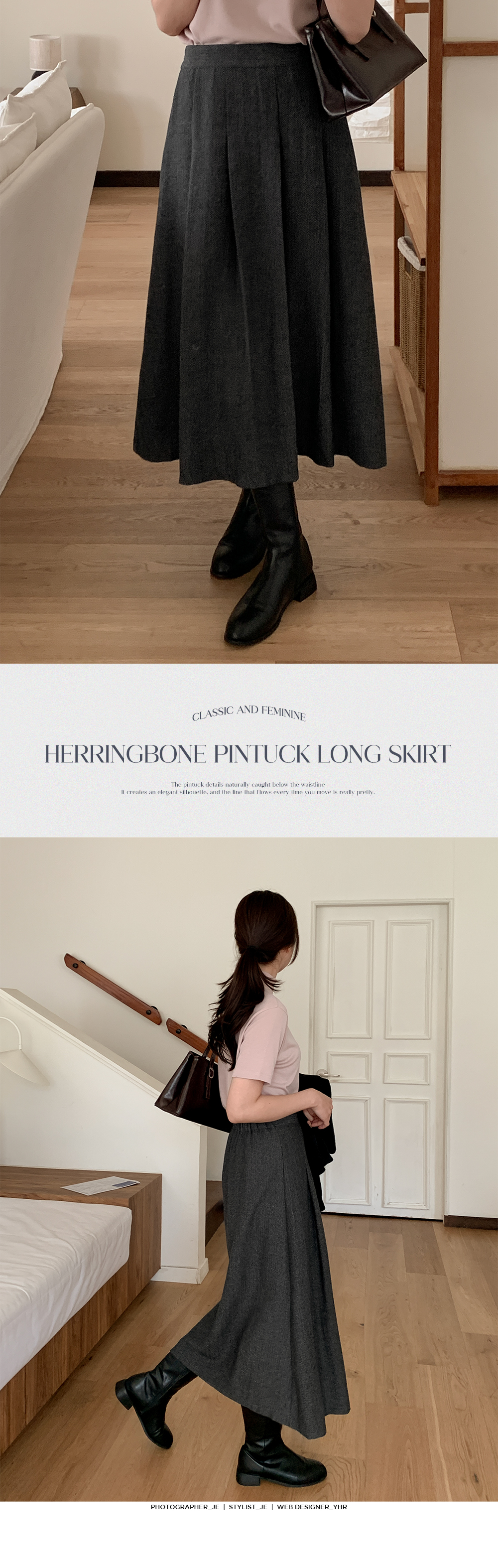 고급스러움이 느껴지는 핀턱 롱 스커트예요.