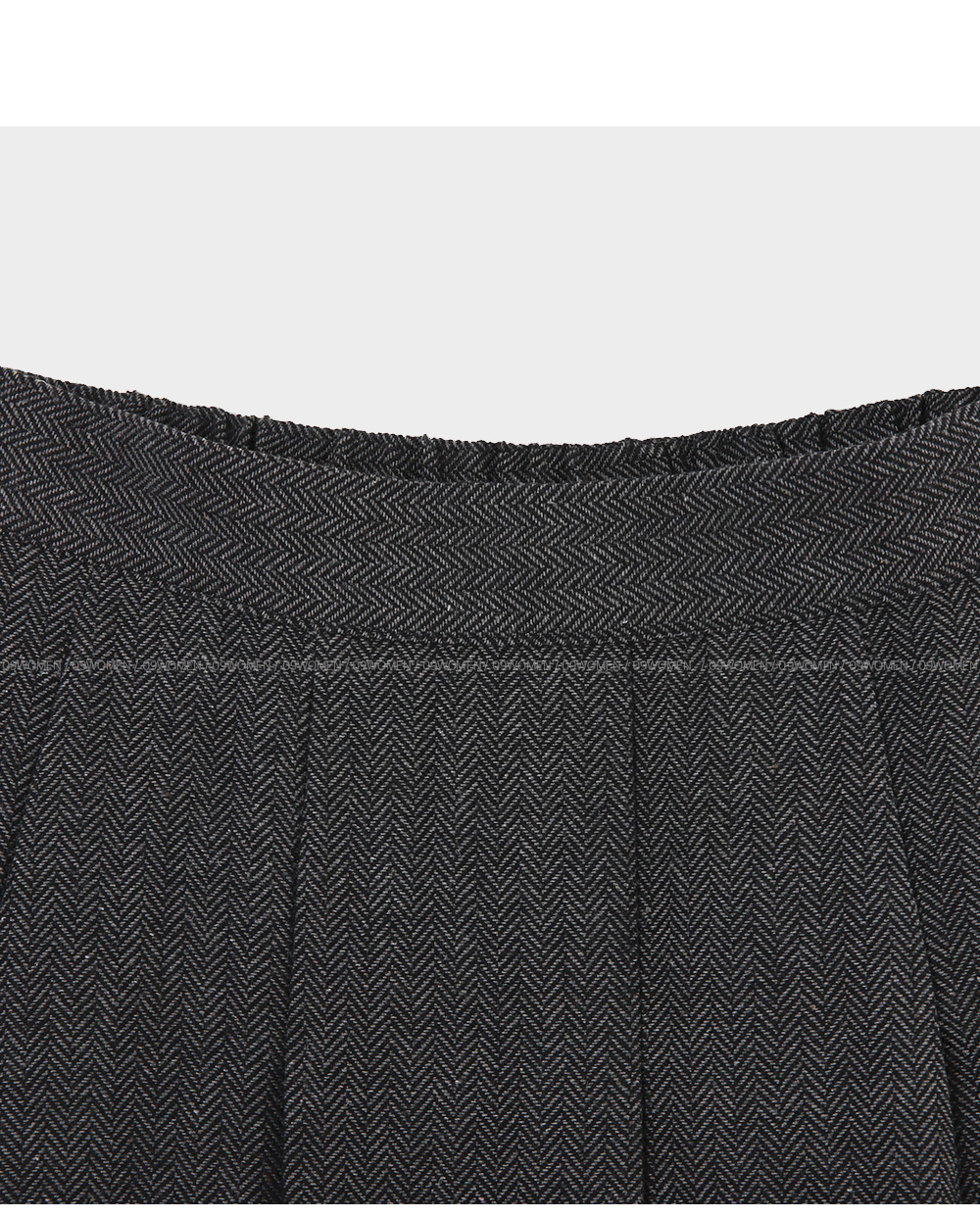 허리선 아래로 자연스럽게 잡힌 핀턱 디테일이