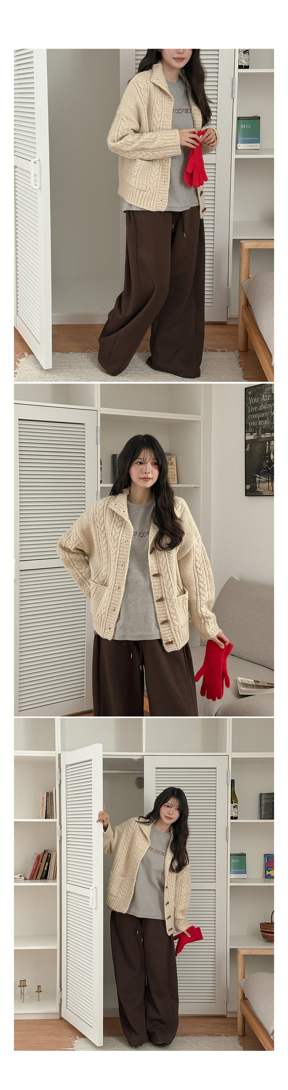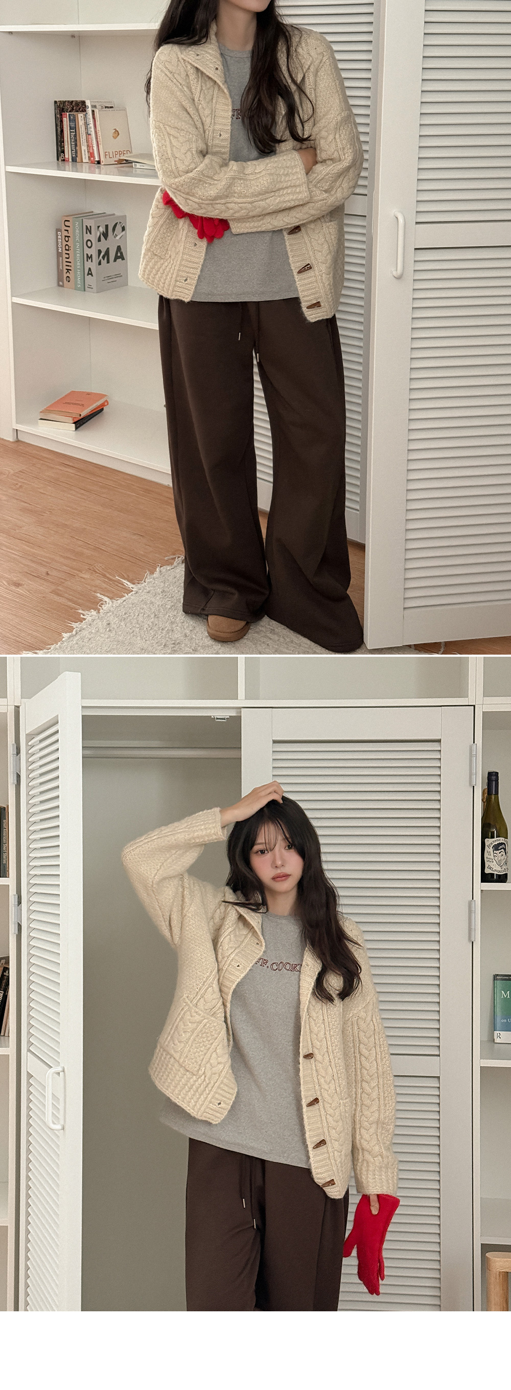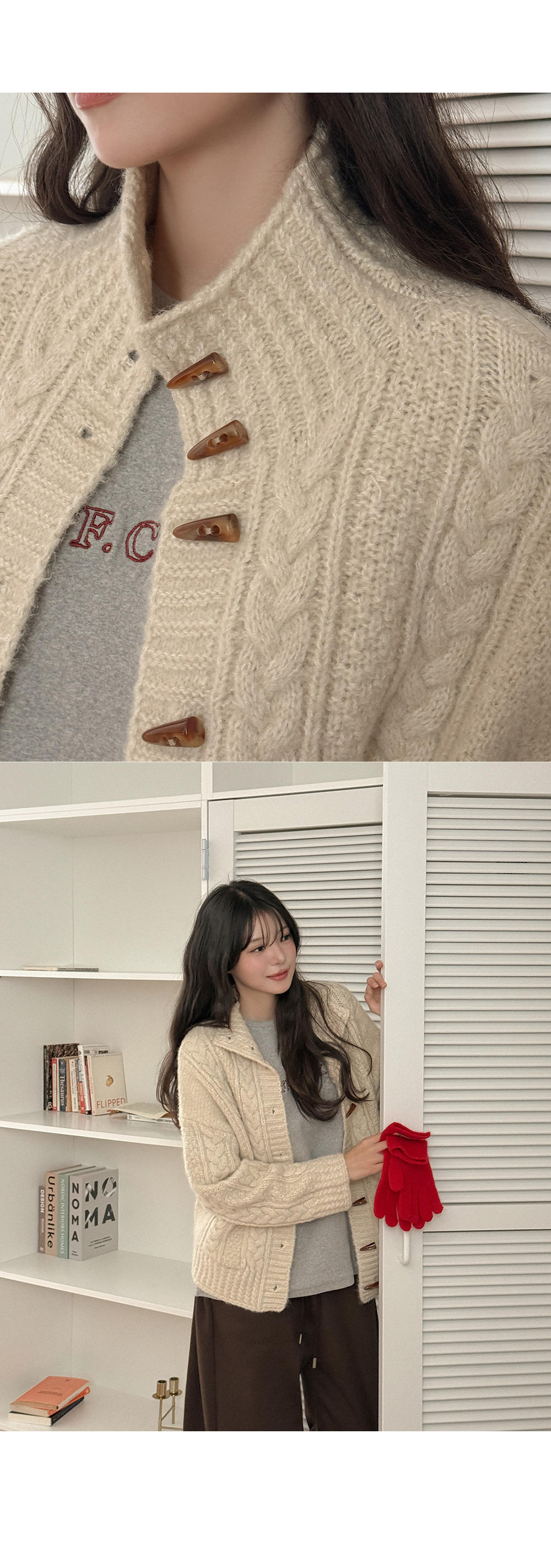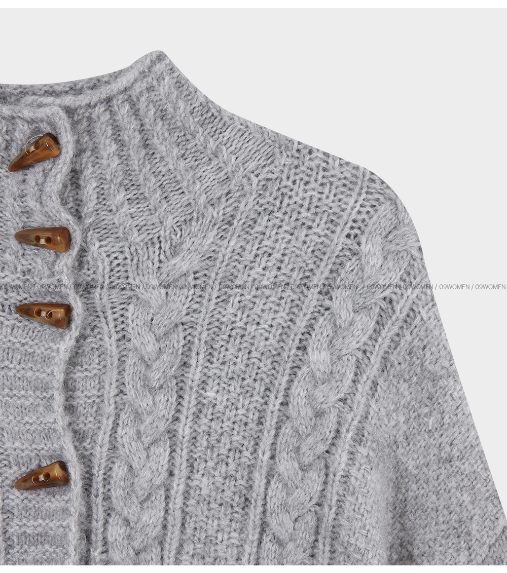 하이넥 디자인의 꽈배기 니트 가디건