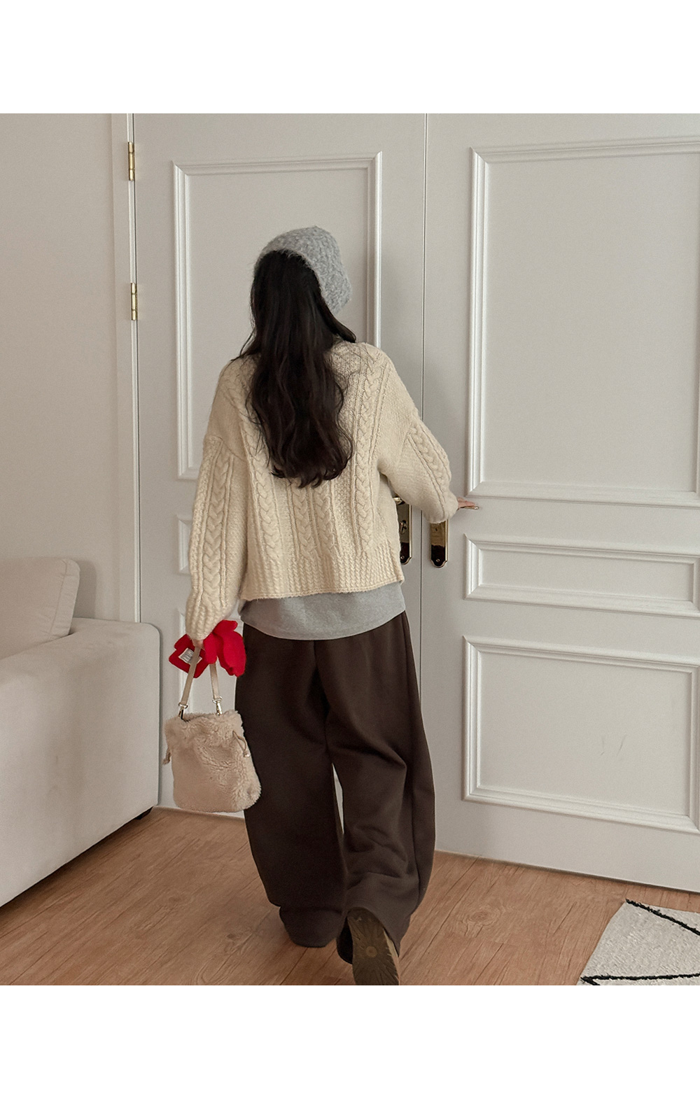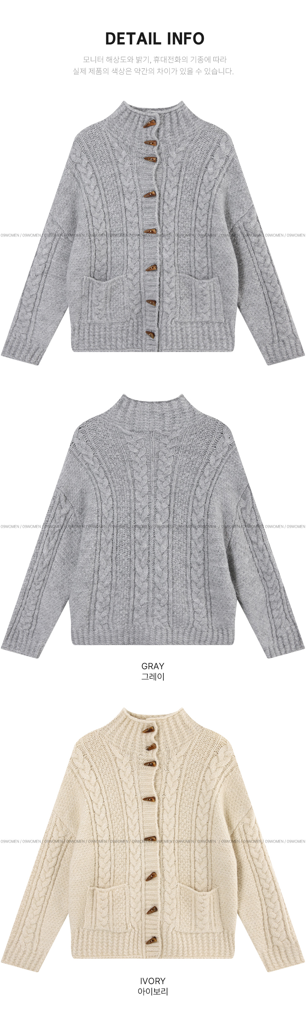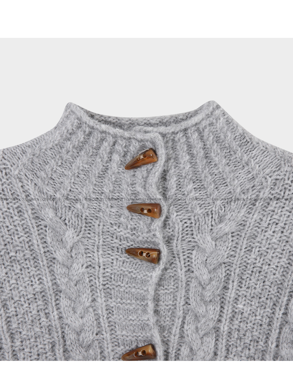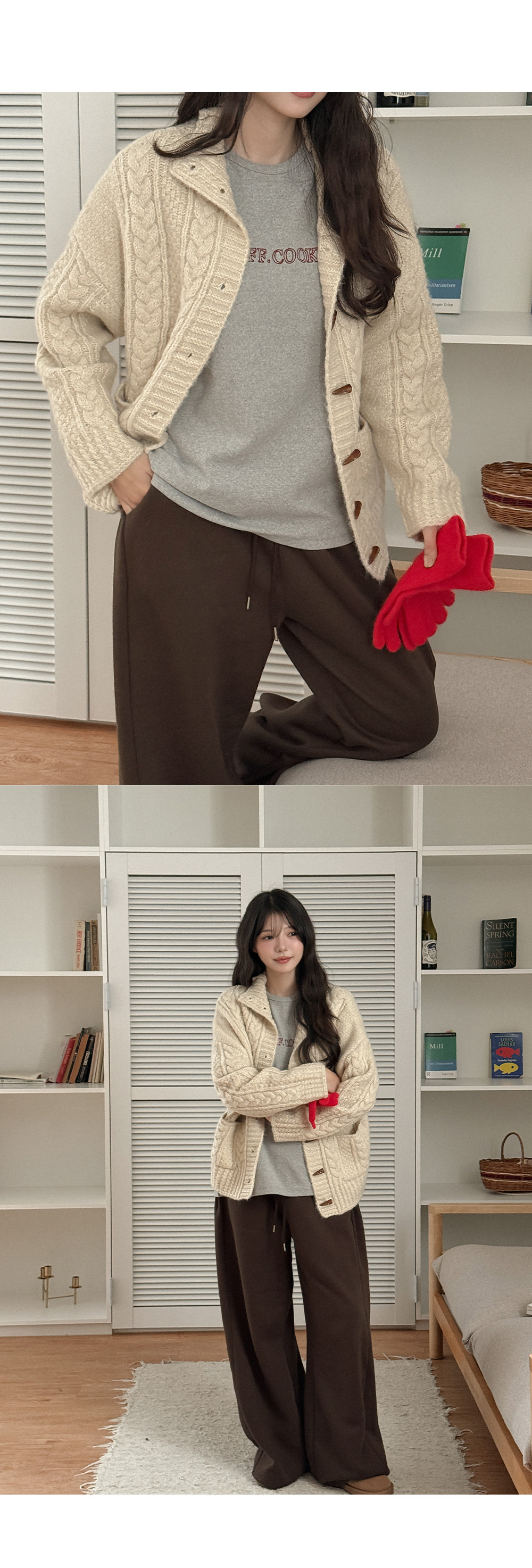 하이넥 디자인의 꽈배기 니트 가디건