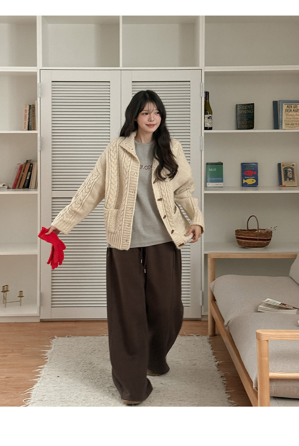 쿠로링 포근 ハイネック ケーブル編み カーディガン 84801
