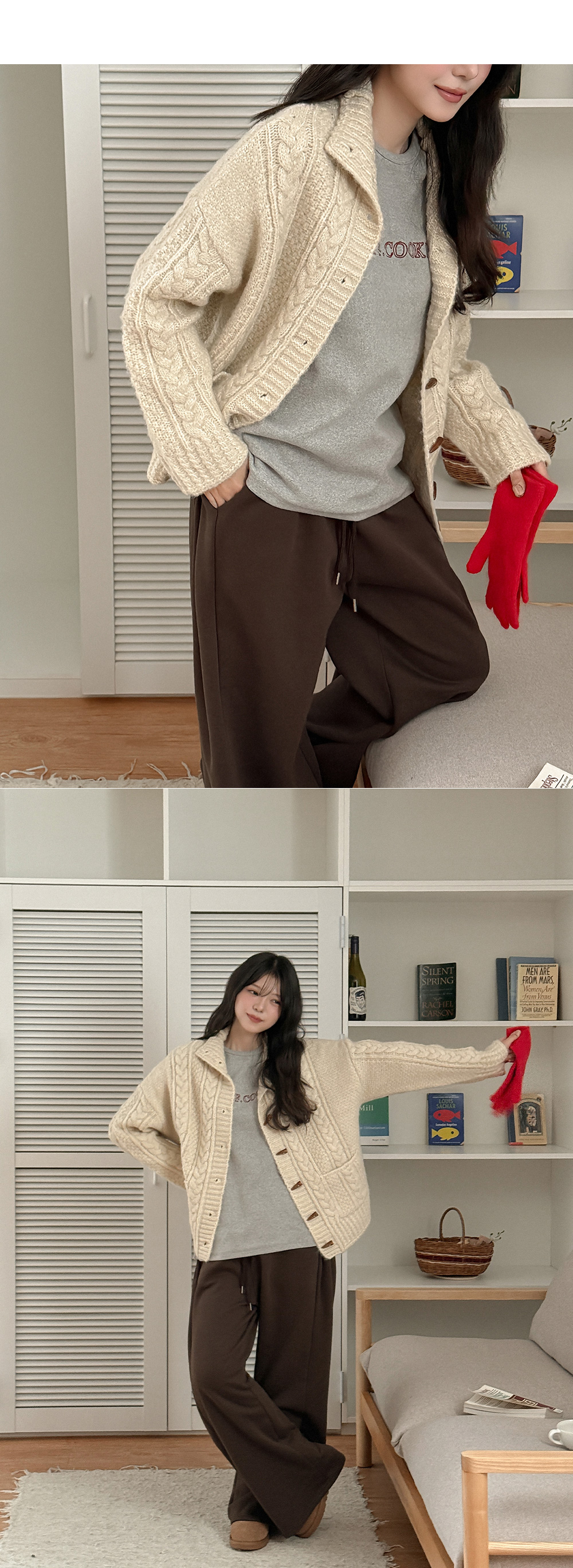 동시에 챙길 수 있는 가디건이에요.