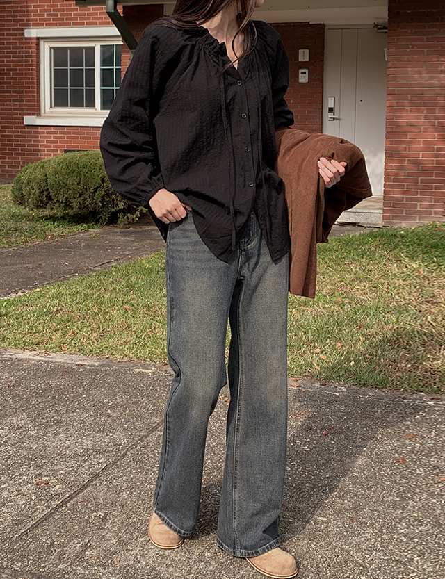 허넷 뒷밴딩 ワイド ブーツカット デニム パンツ 84570