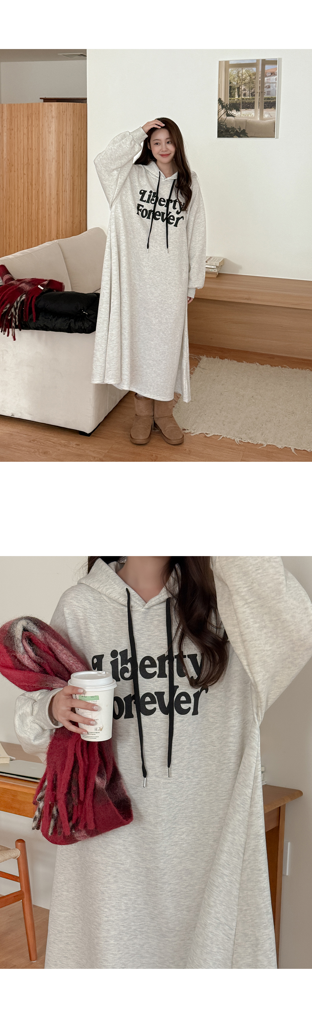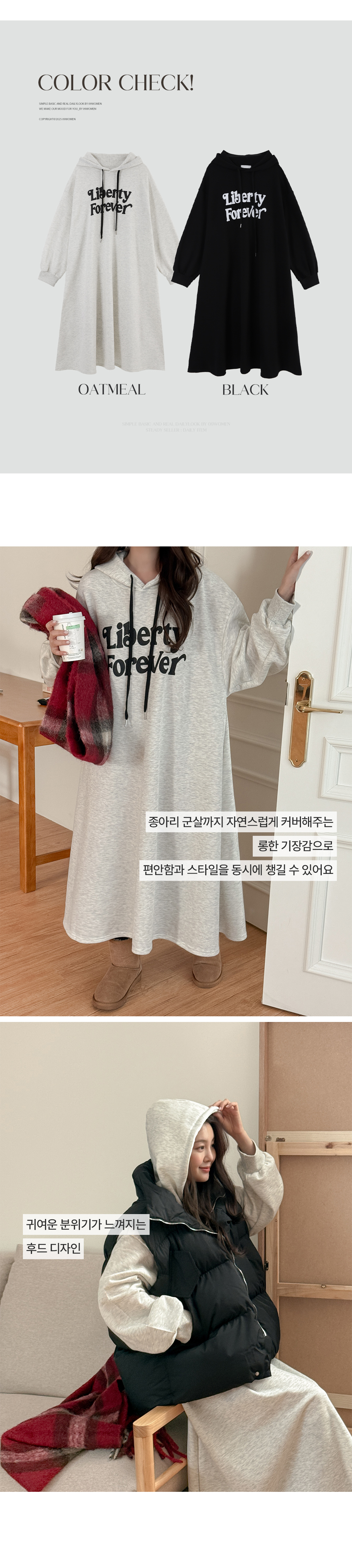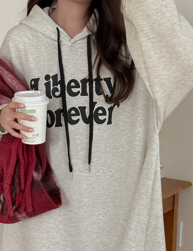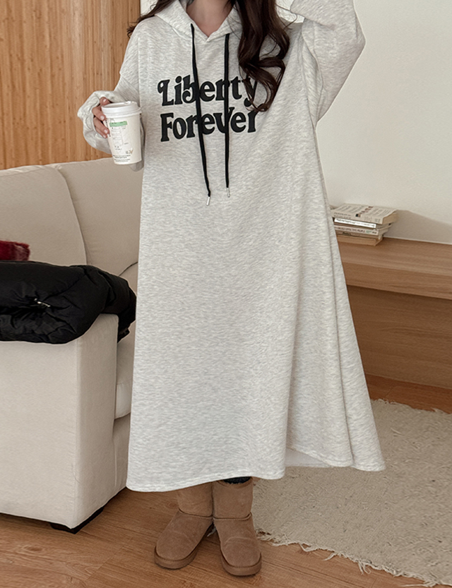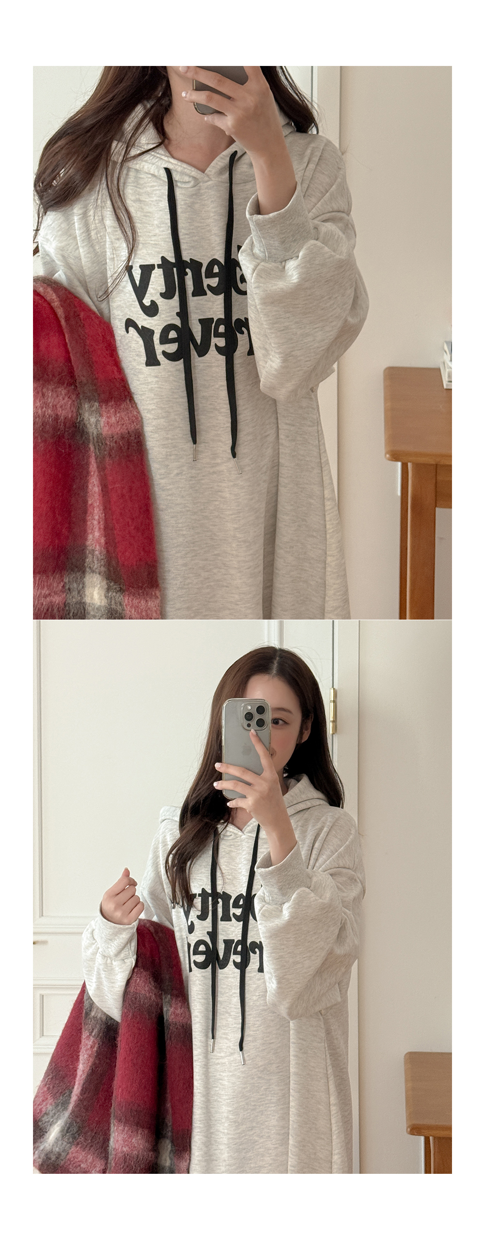 로플 리얼 ルーズフィット 起毛 레터링 フード  ワンピース 84851