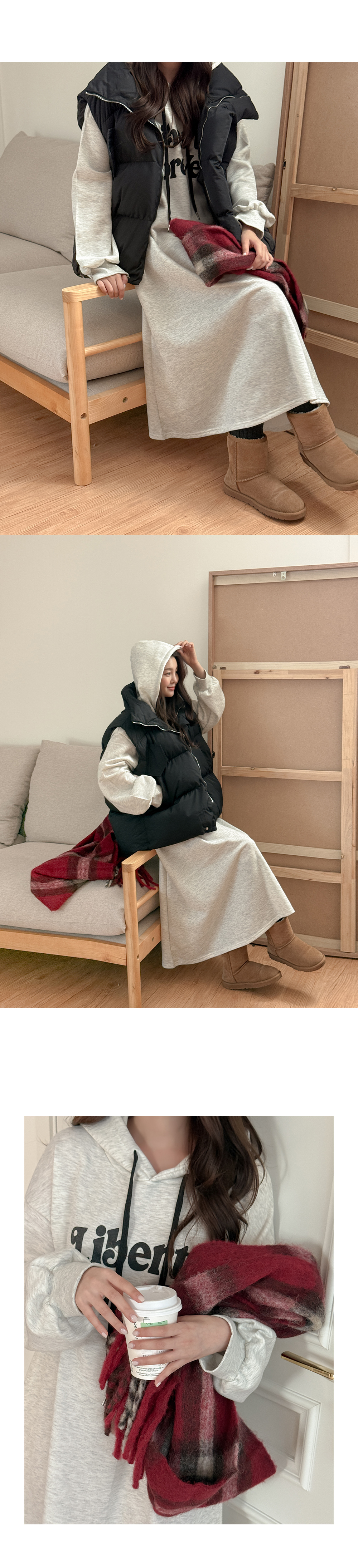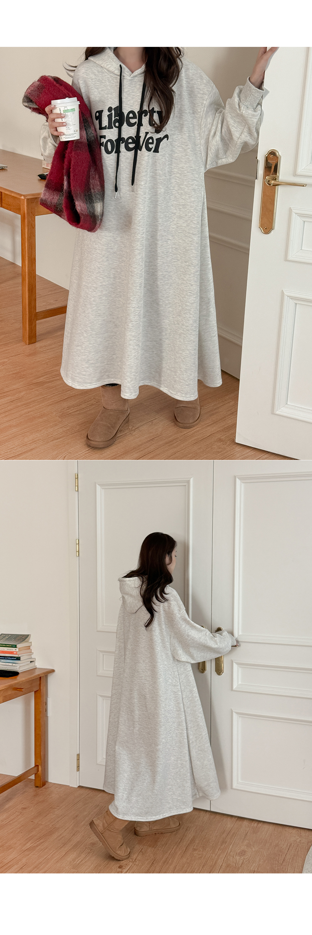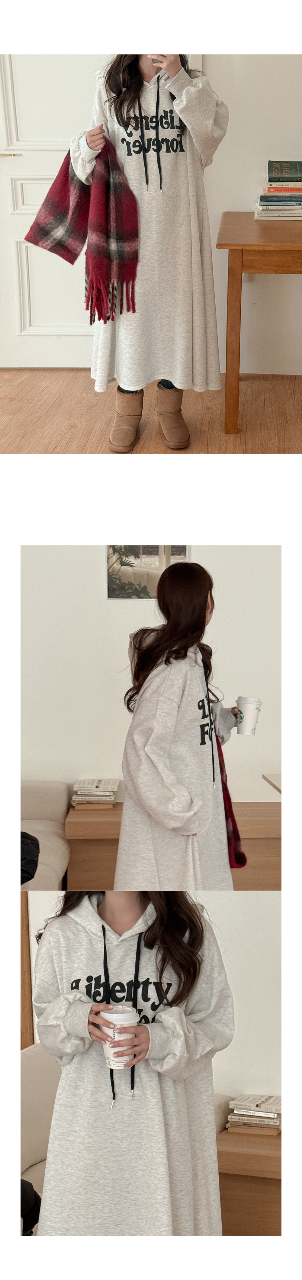 로플 리얼 ルーズフィット 起毛 레터링 フード  ワンピース 84851