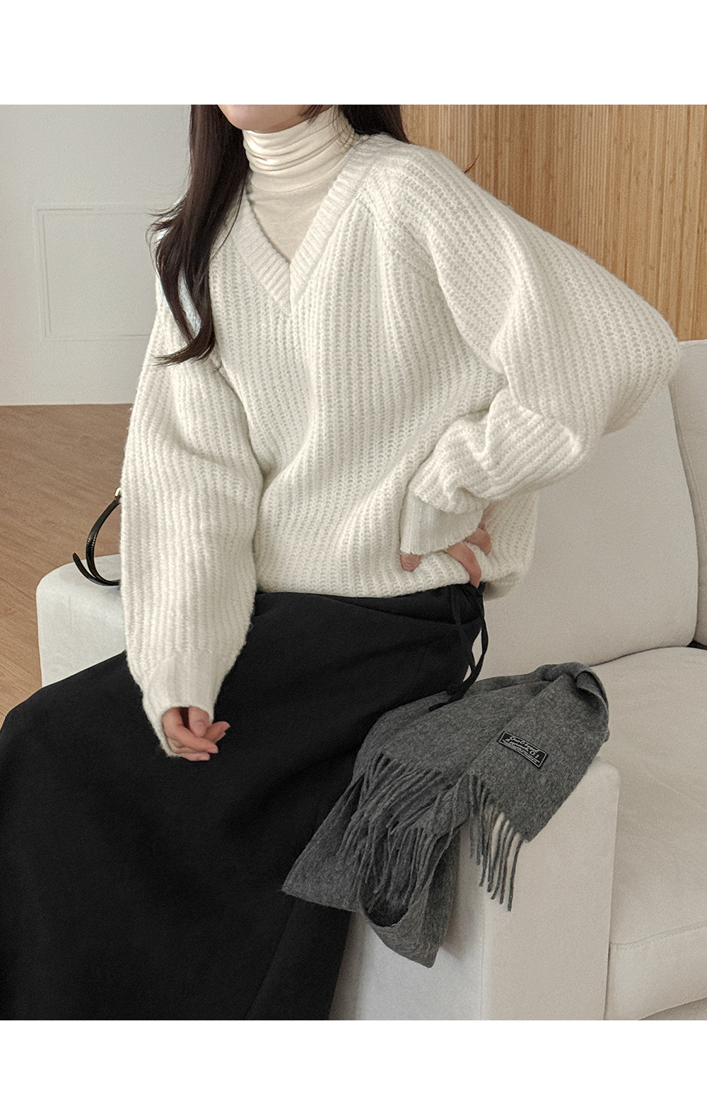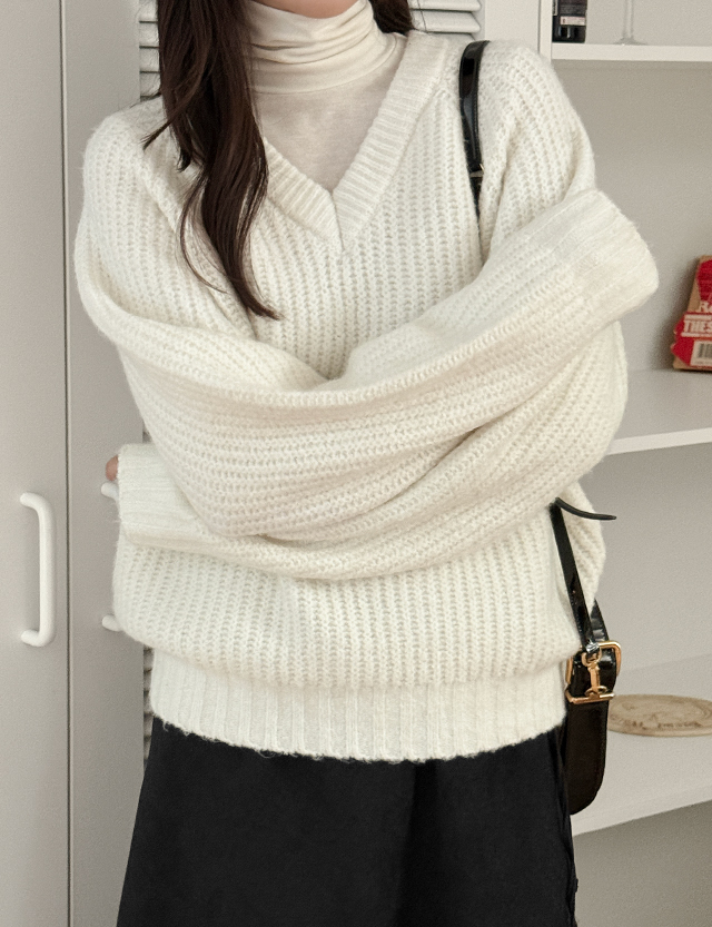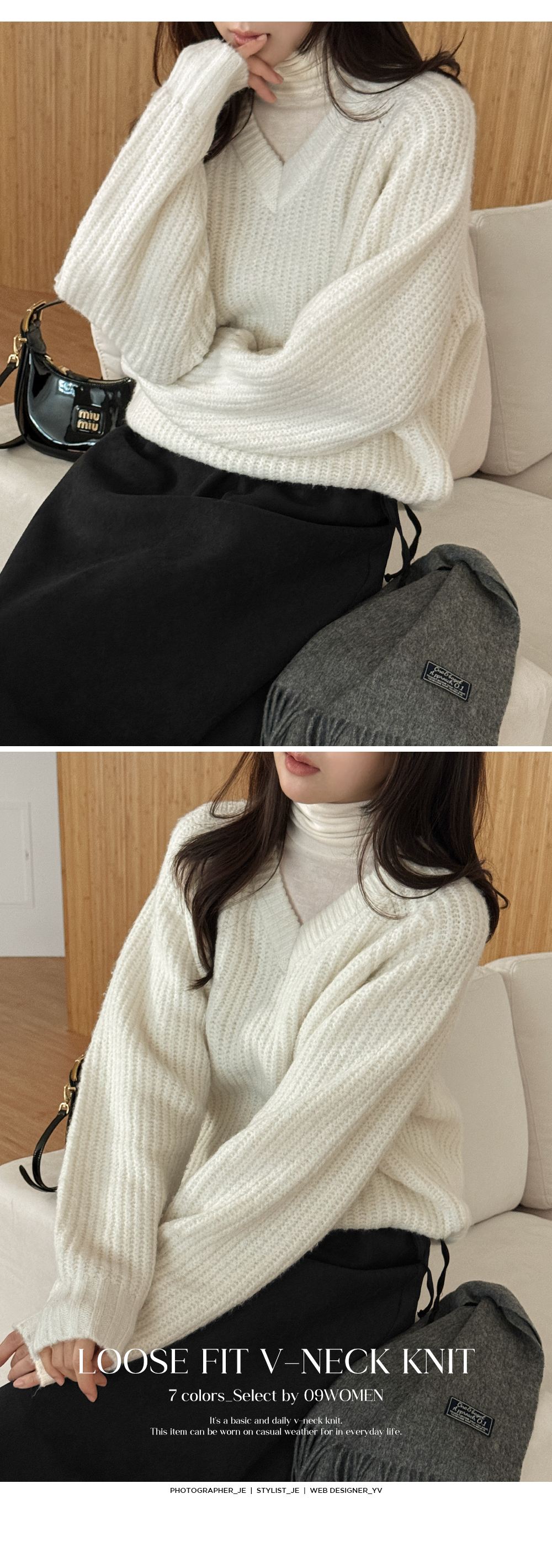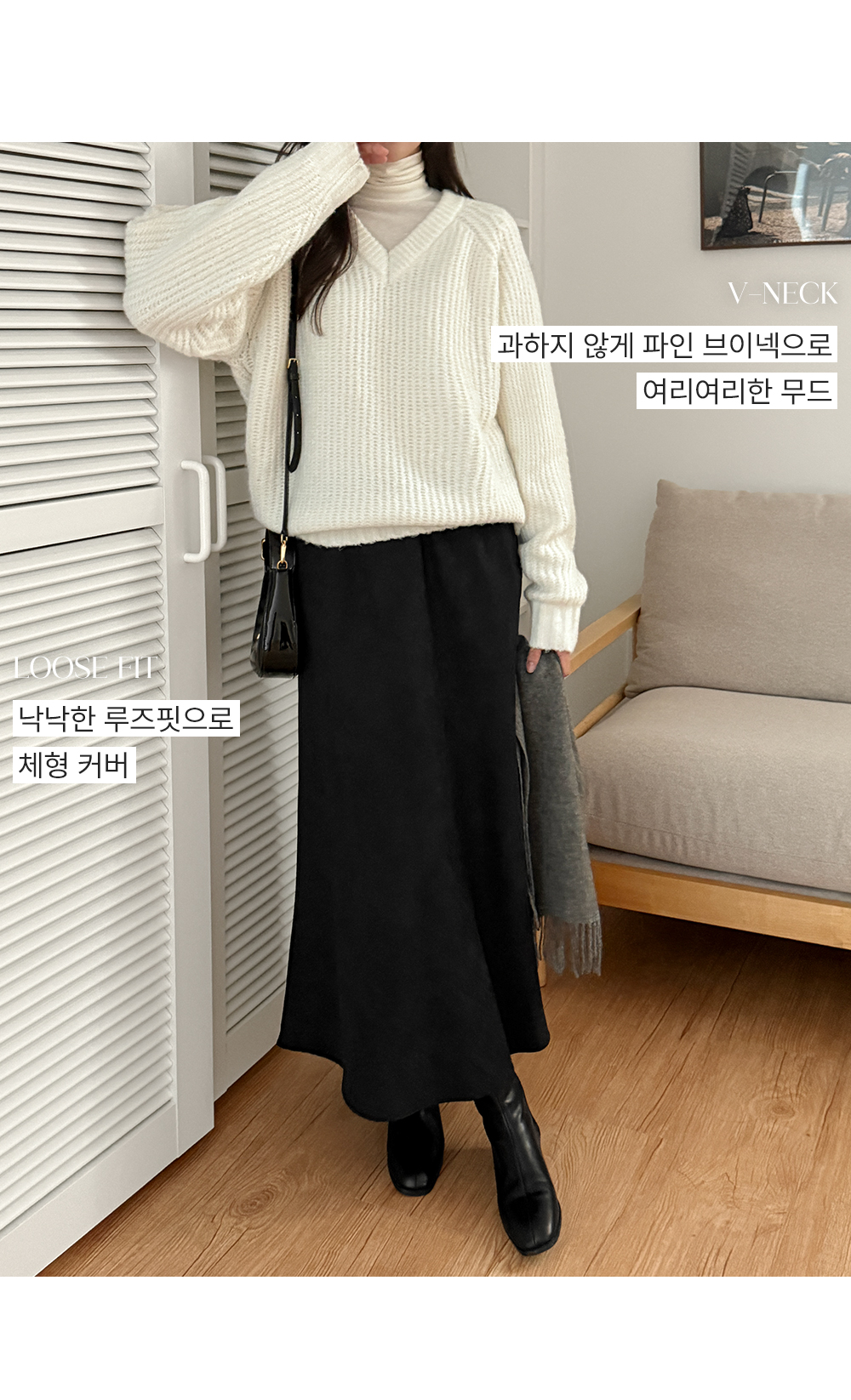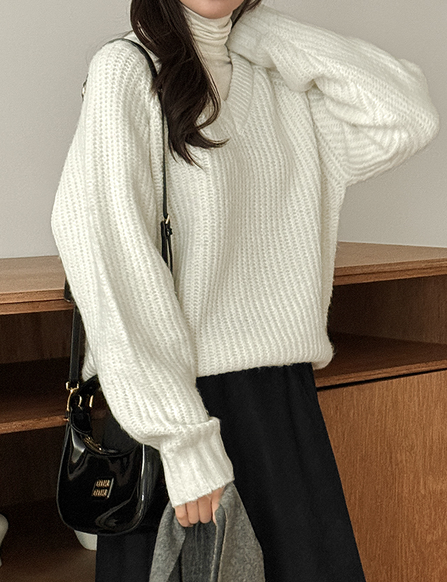 리코드 ルーズフィット 하찌 ウール Vネック ニット 84879