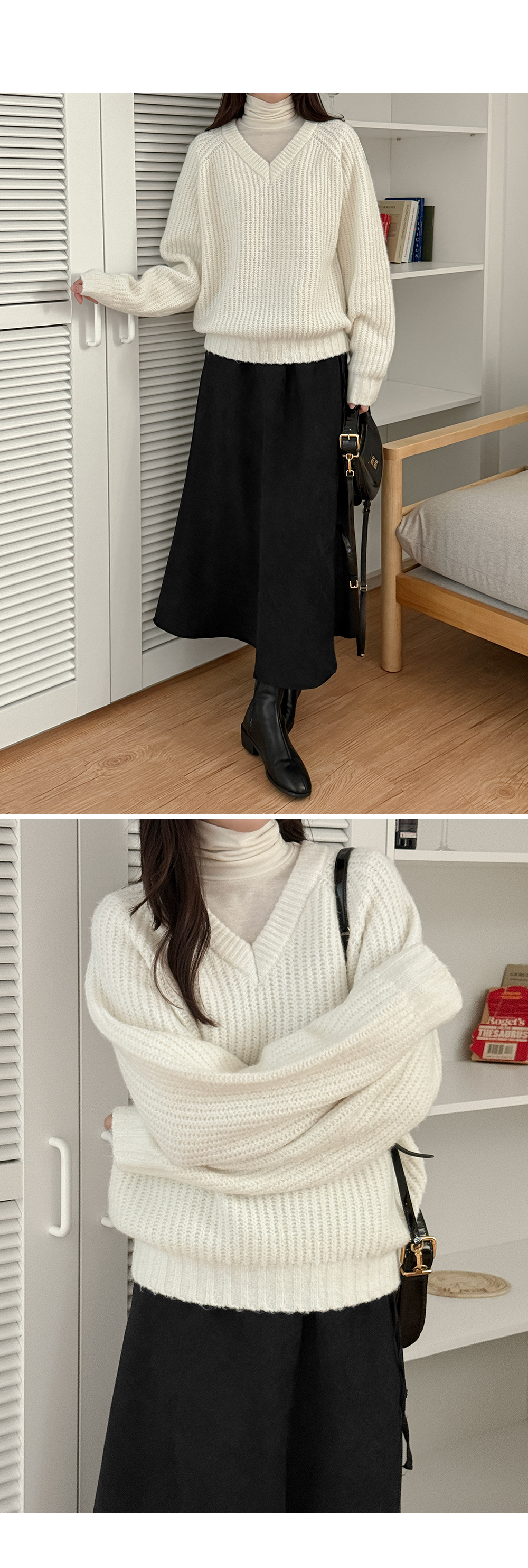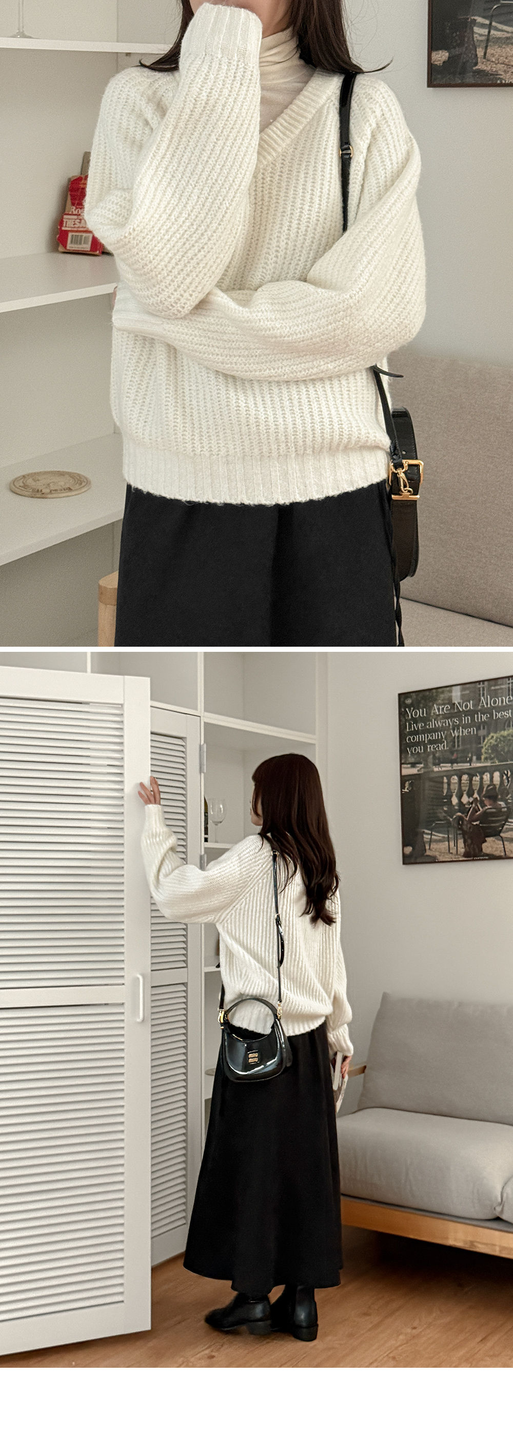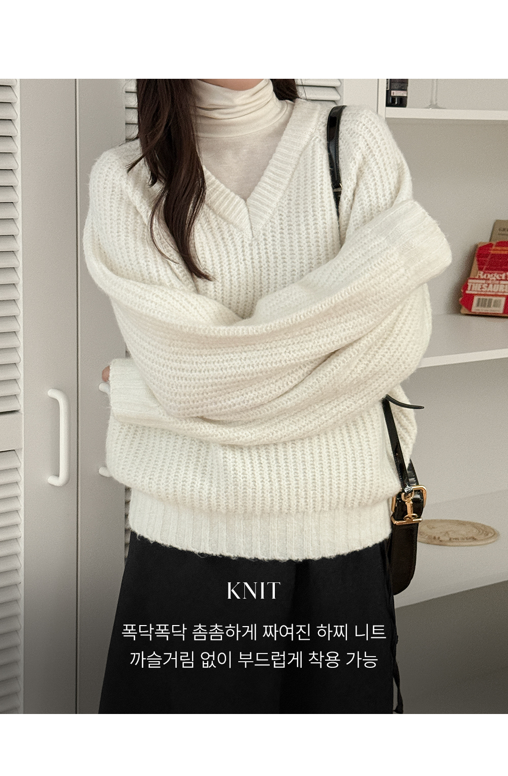리코드 ルーズフィット 하찌 ウール Vネック ニット 84879