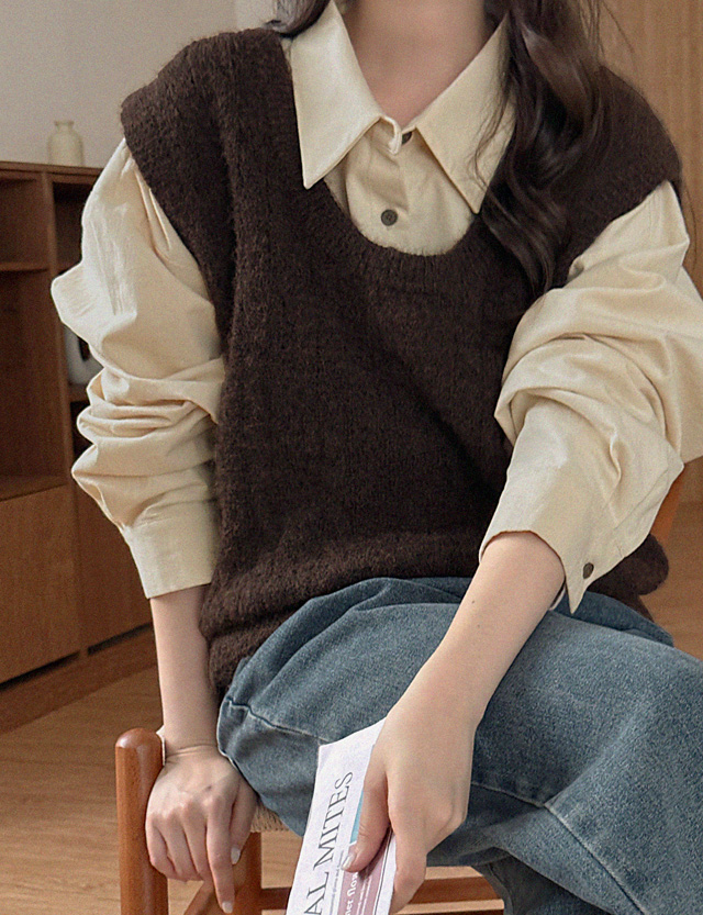 포실포실 ルーズフィット パンチング ウール ニット ベスト 84667