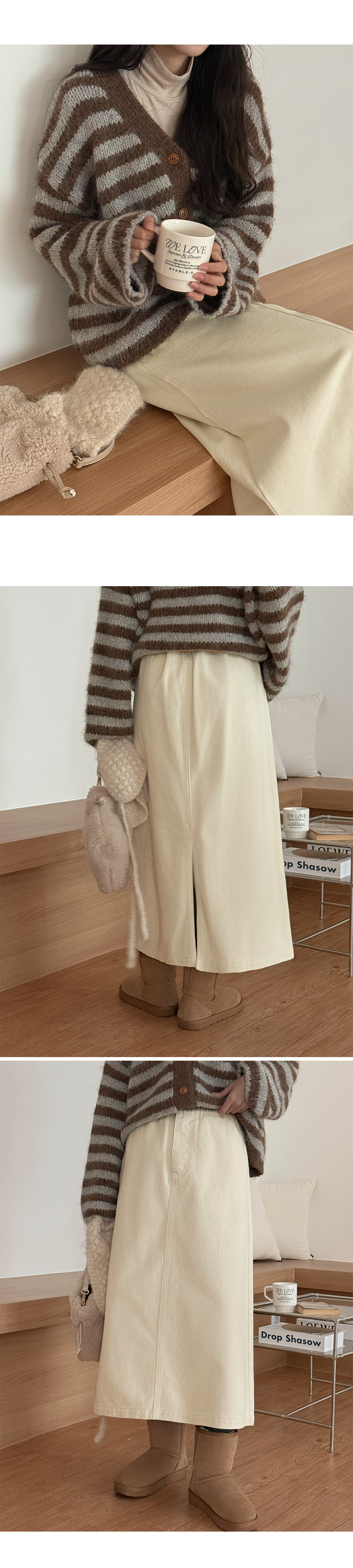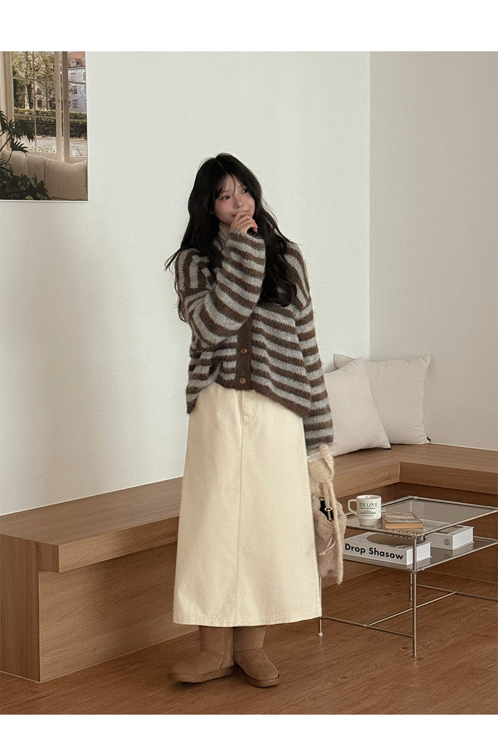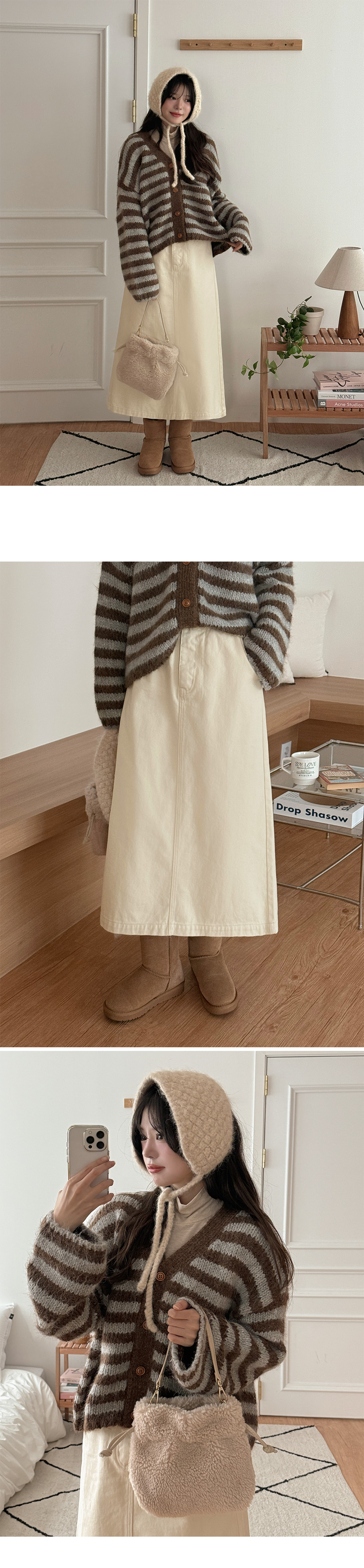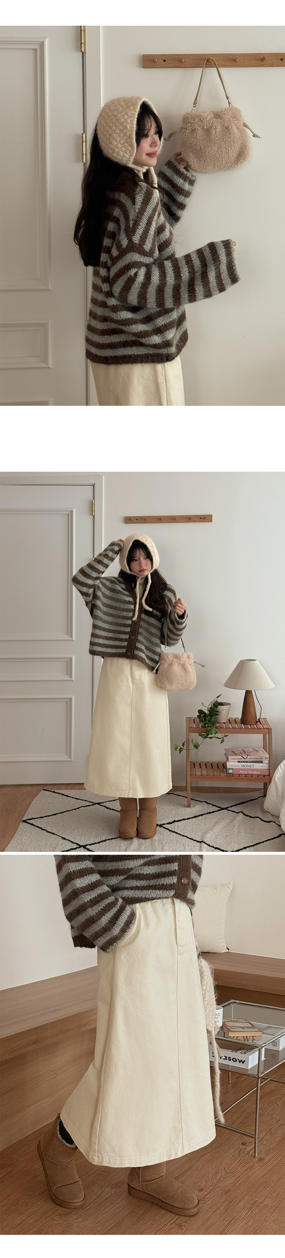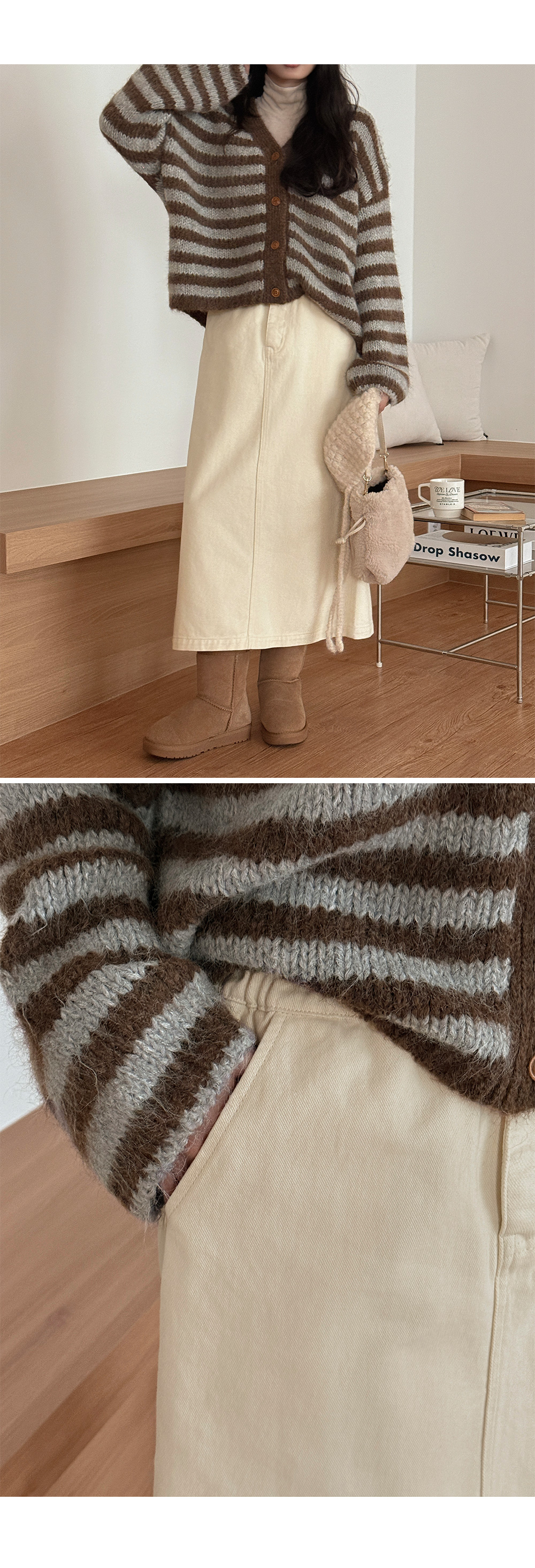 루슨 ストライプ ニット ルーズフィット カーディガン 84798