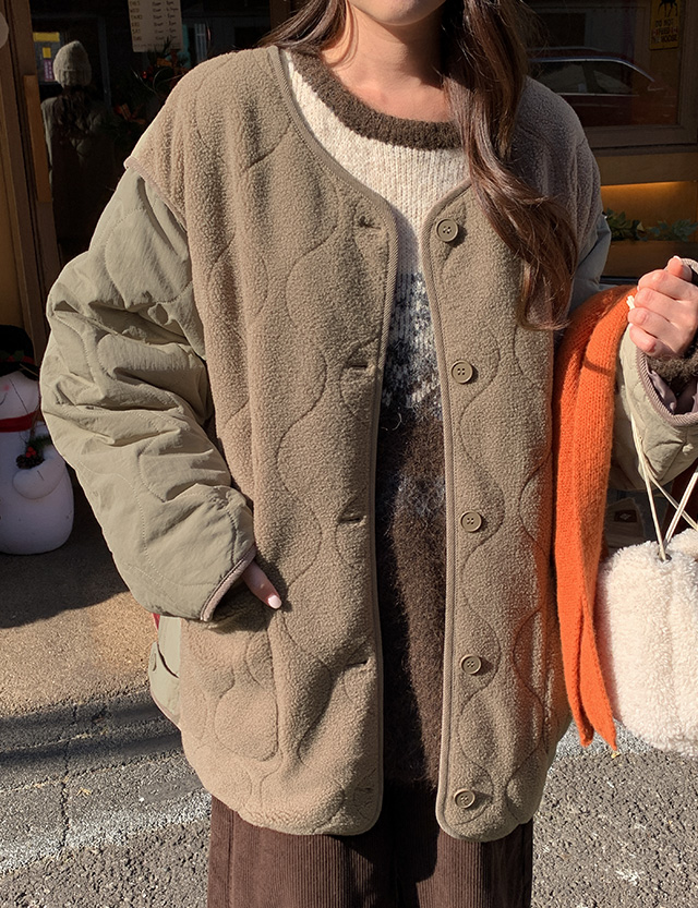 몽글몽글 ルーズフィット 配色 キルティング ジャンパ 85014