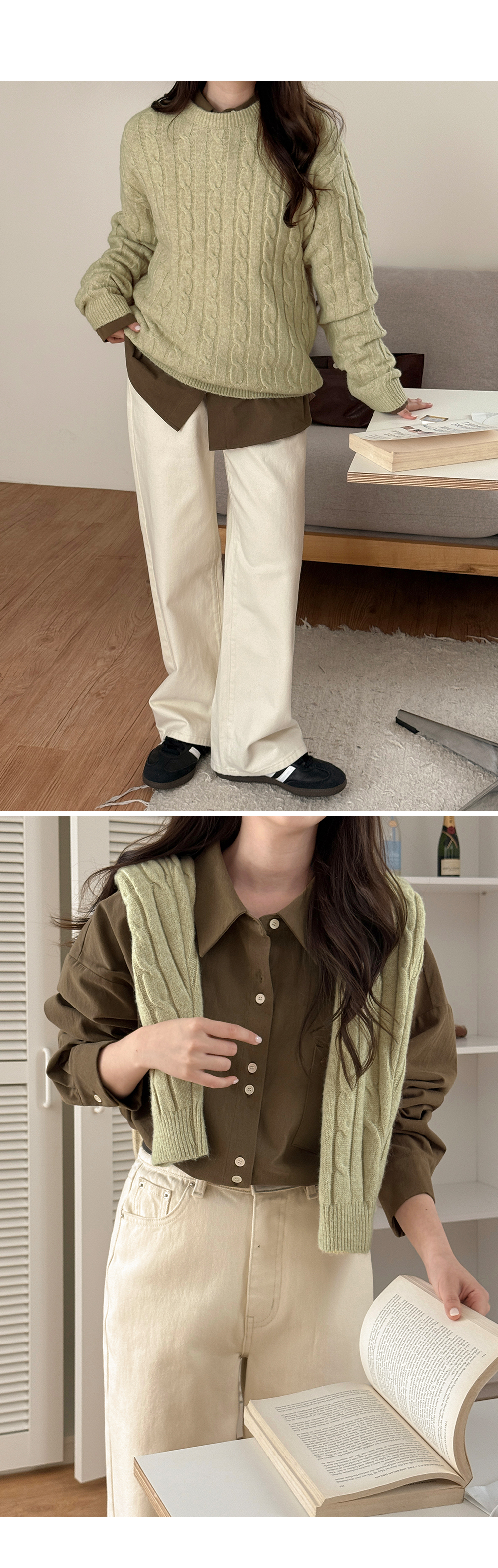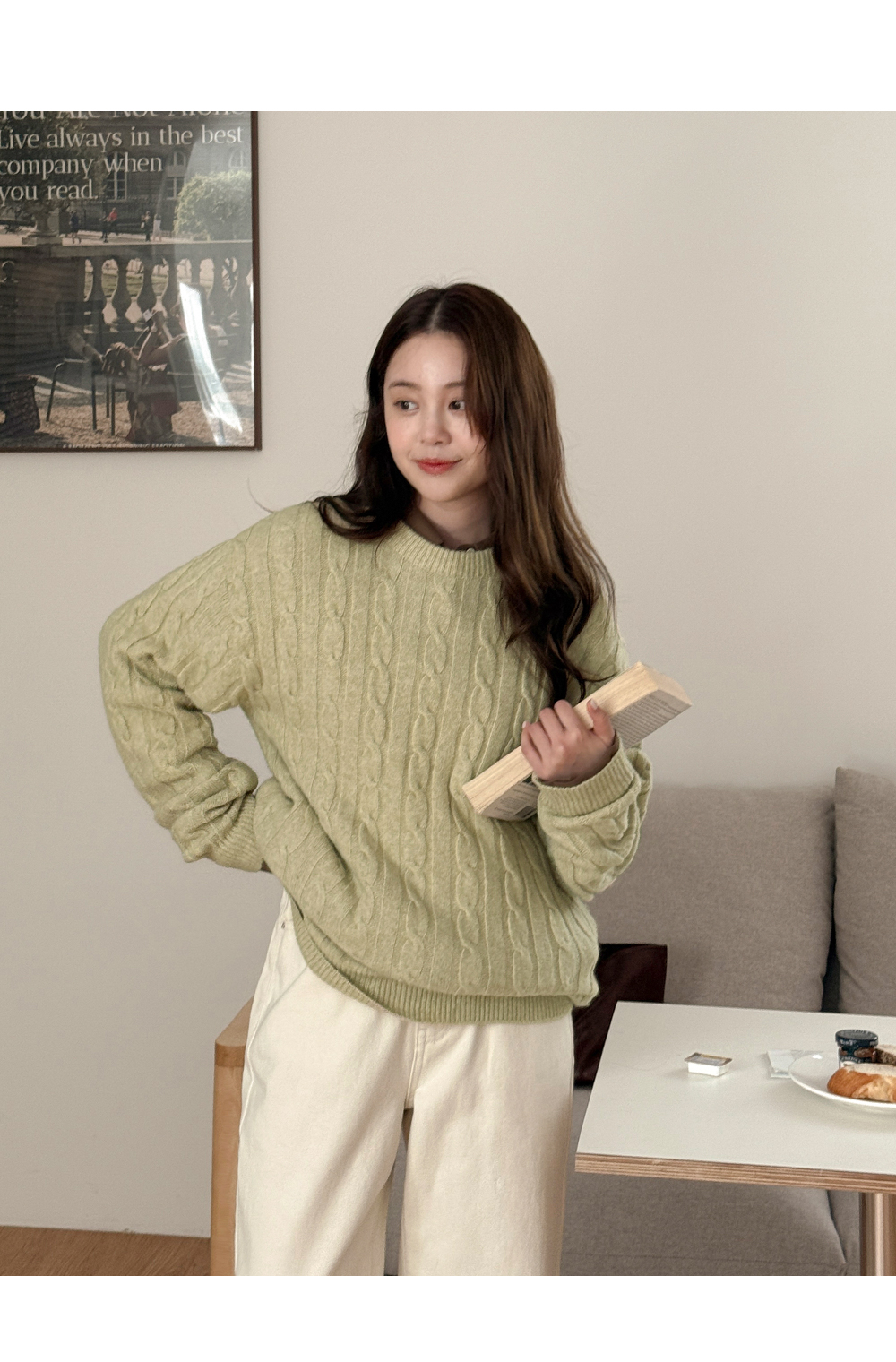 브레드 ラウンドネック ケーブル編み ニット 84761