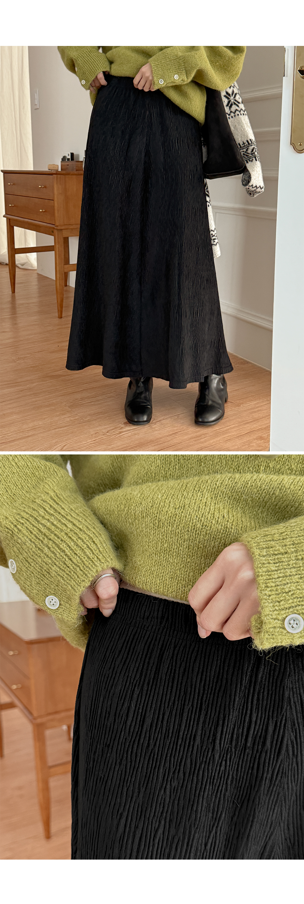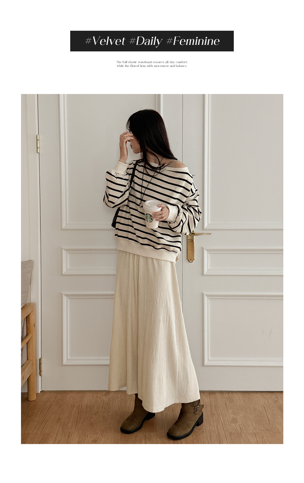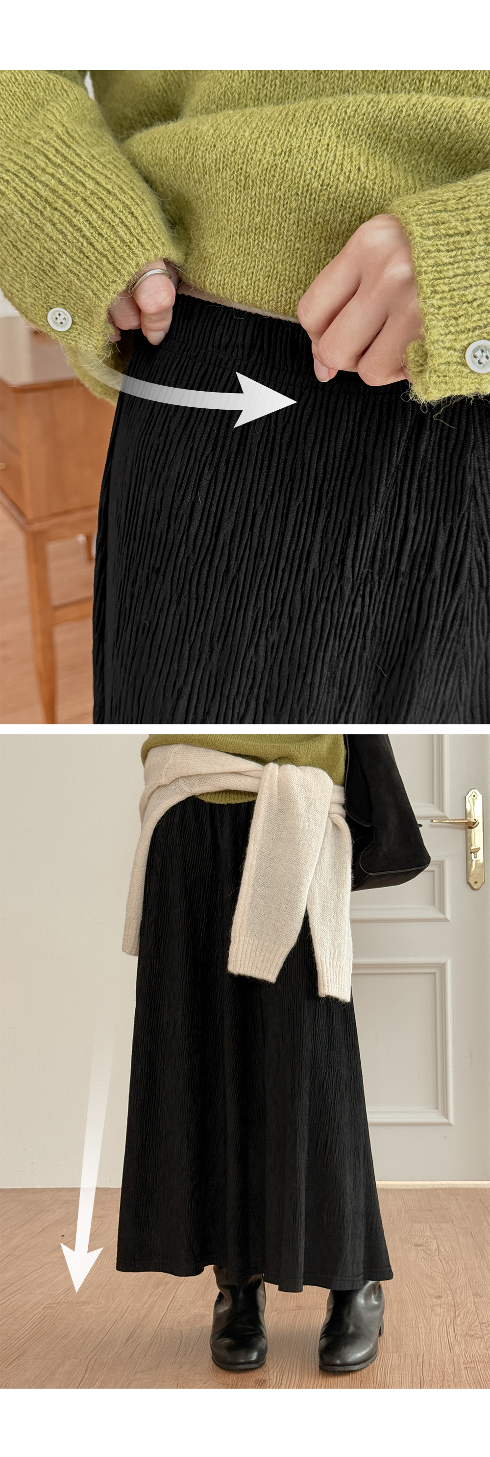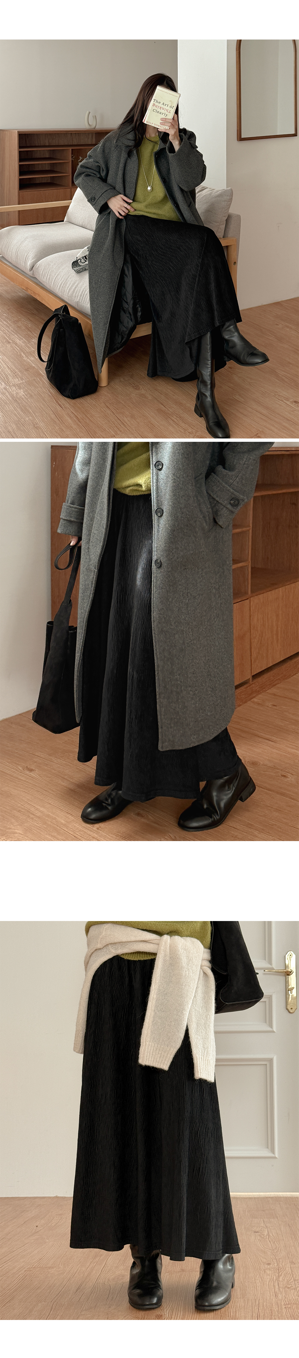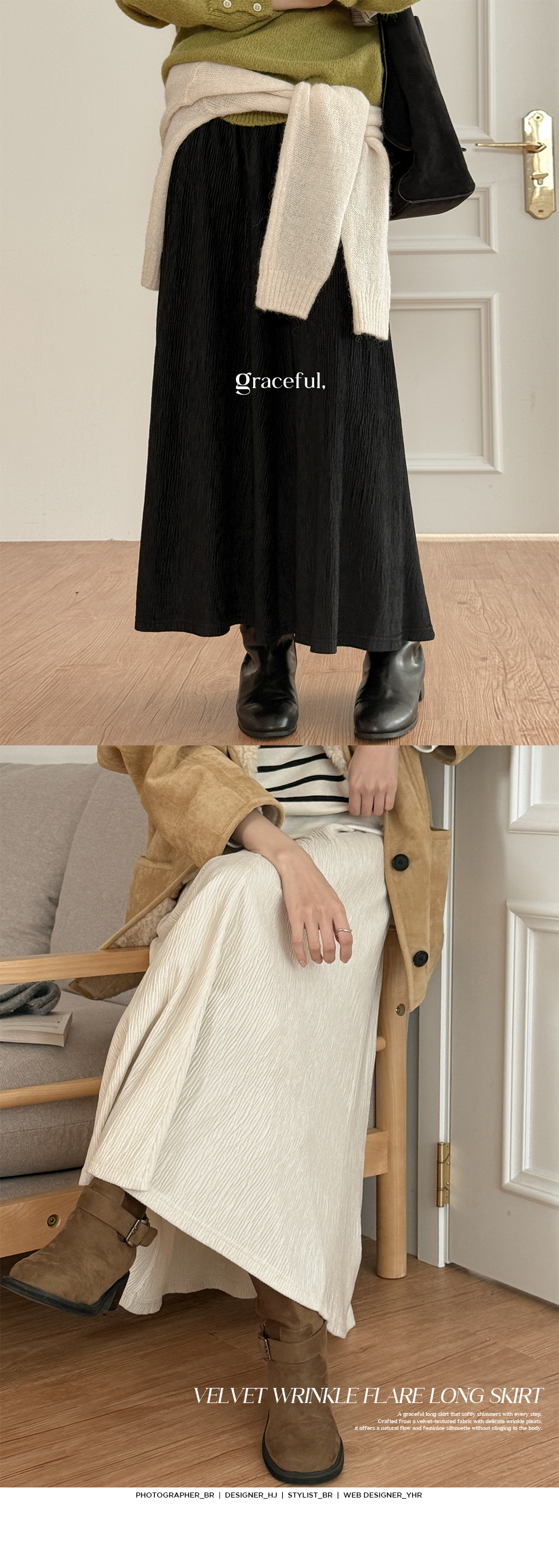 플리츠처럼 가볍고 벨벳처럼 부드러운 롱 스커트예요.