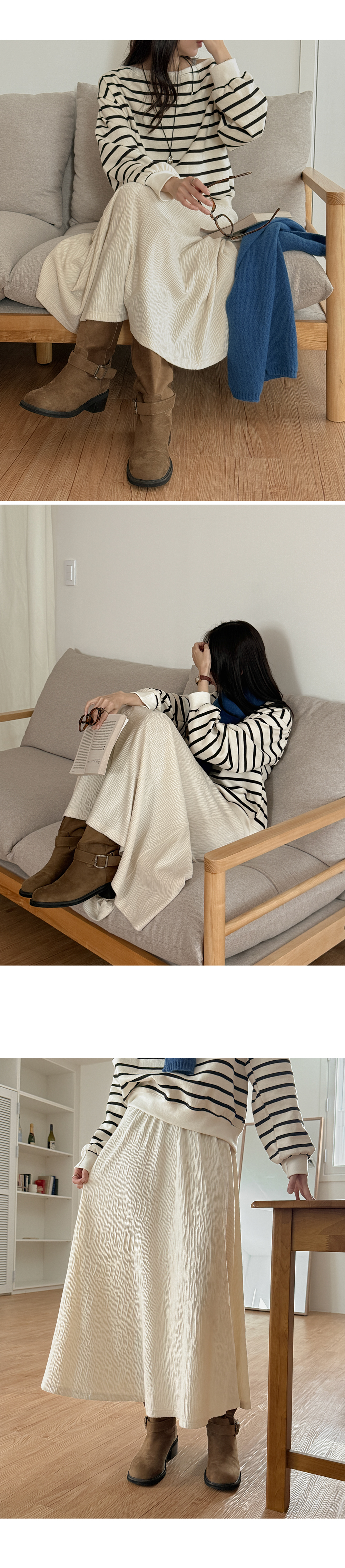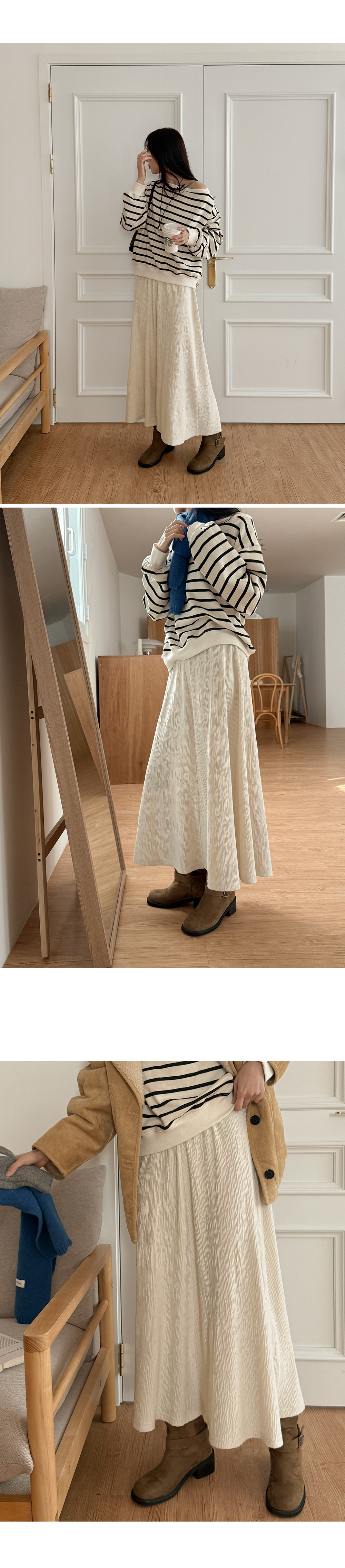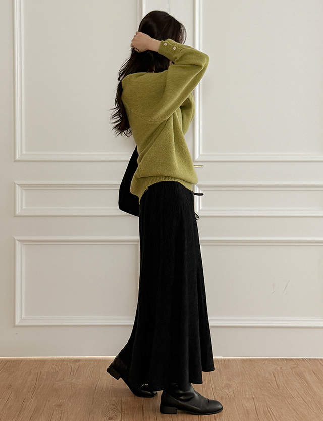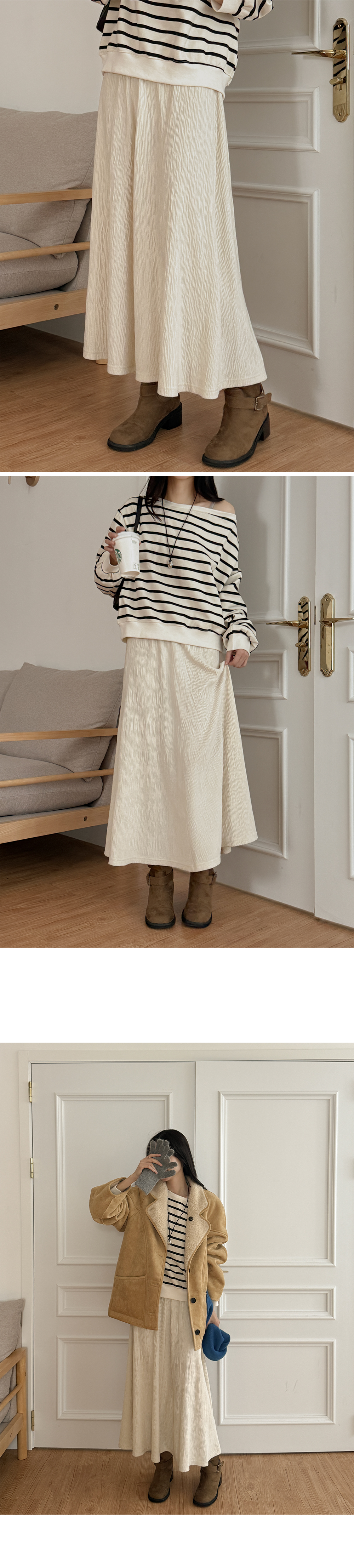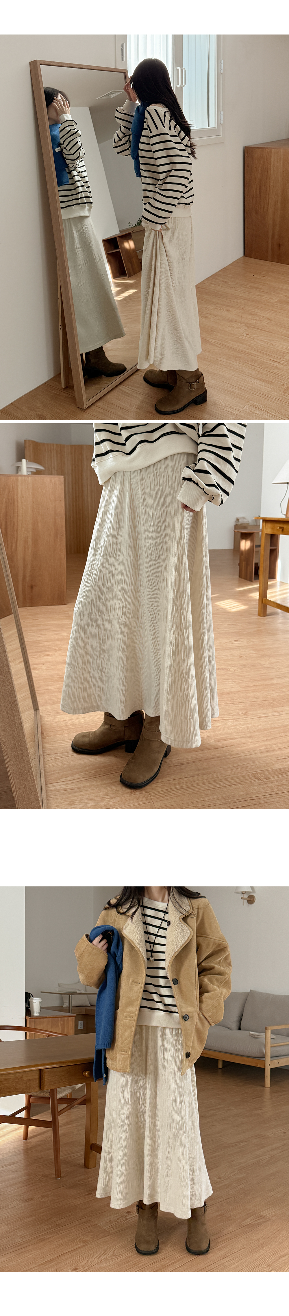 플리츠처럼 가볍고 벨벳처럼 부드러운 롱 스커트예요.
