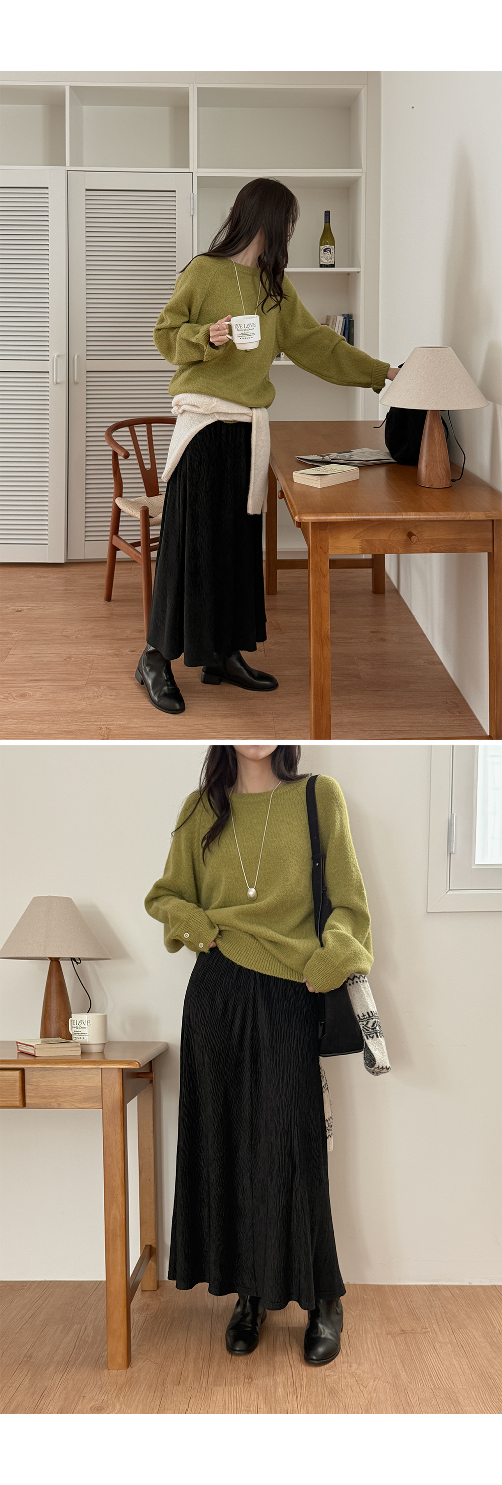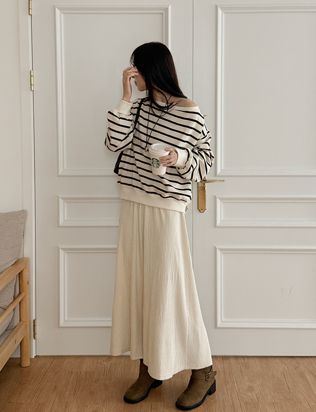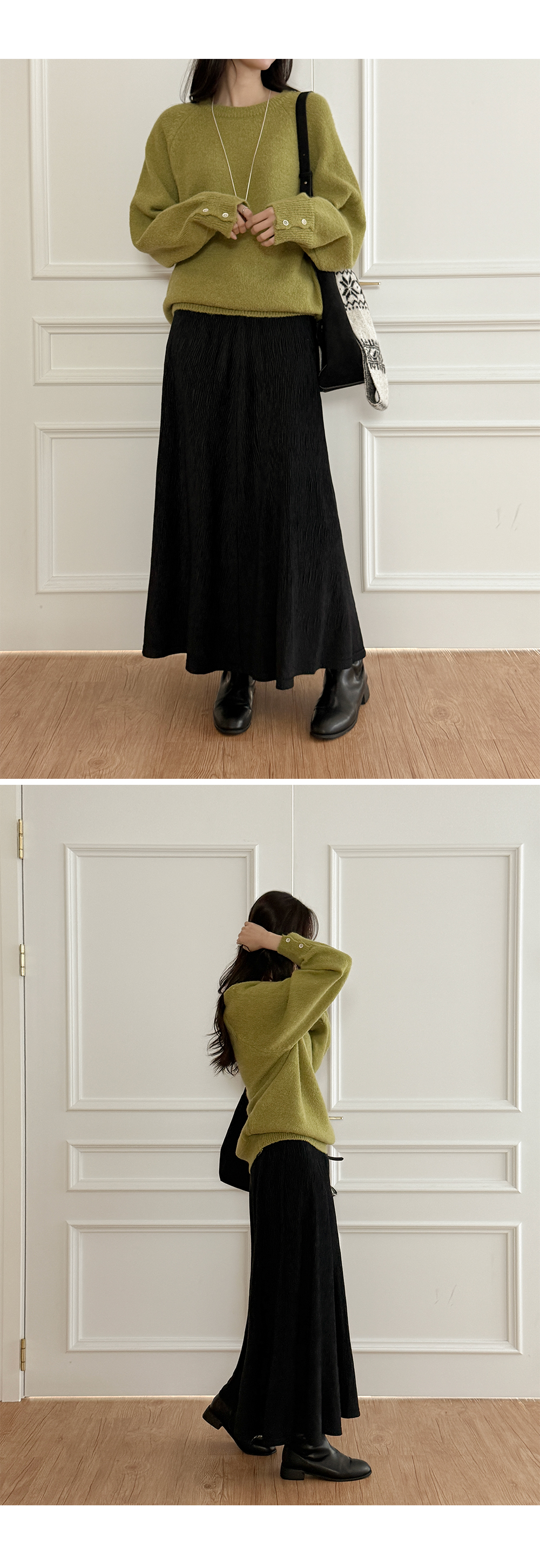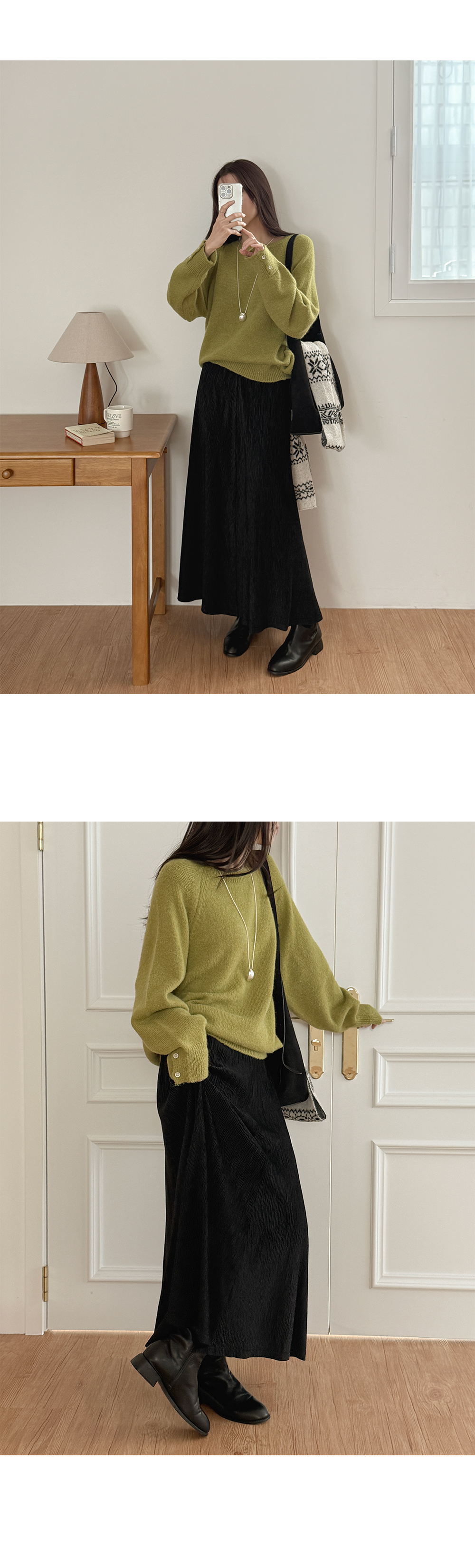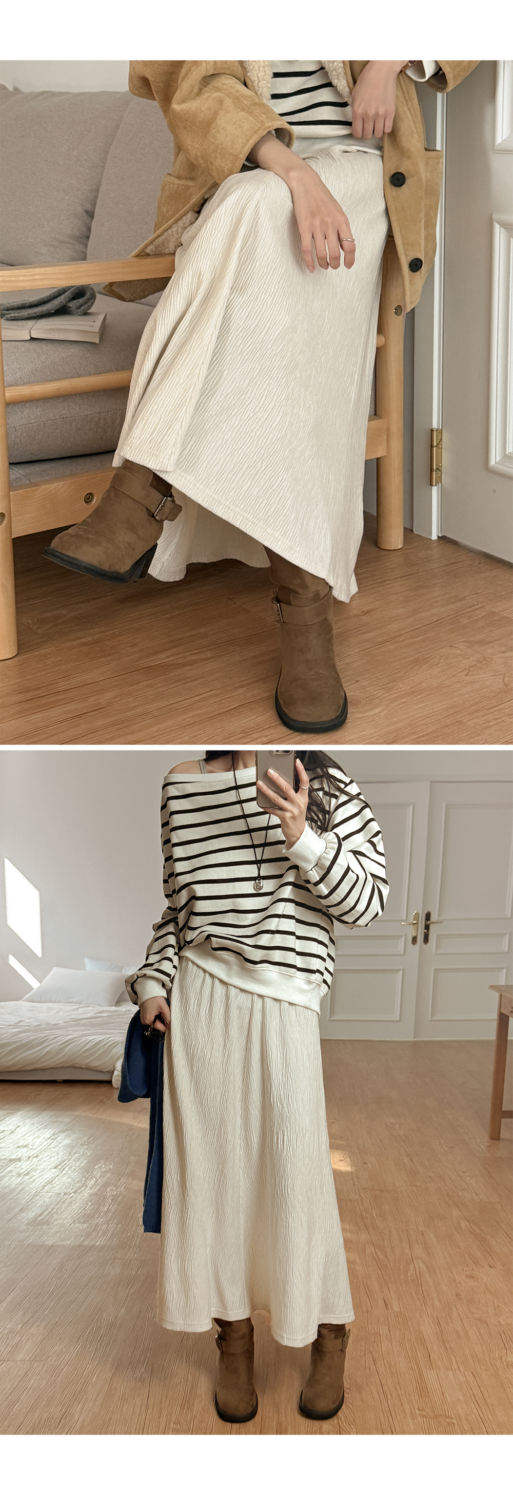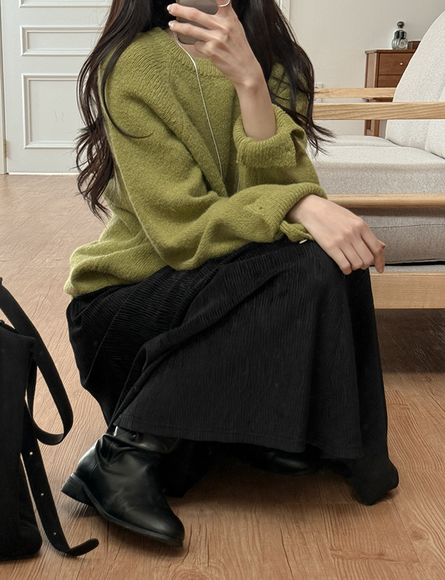 플리츠처럼 가볍고 벨벳처럼 부드러운 롱 스커트예요.