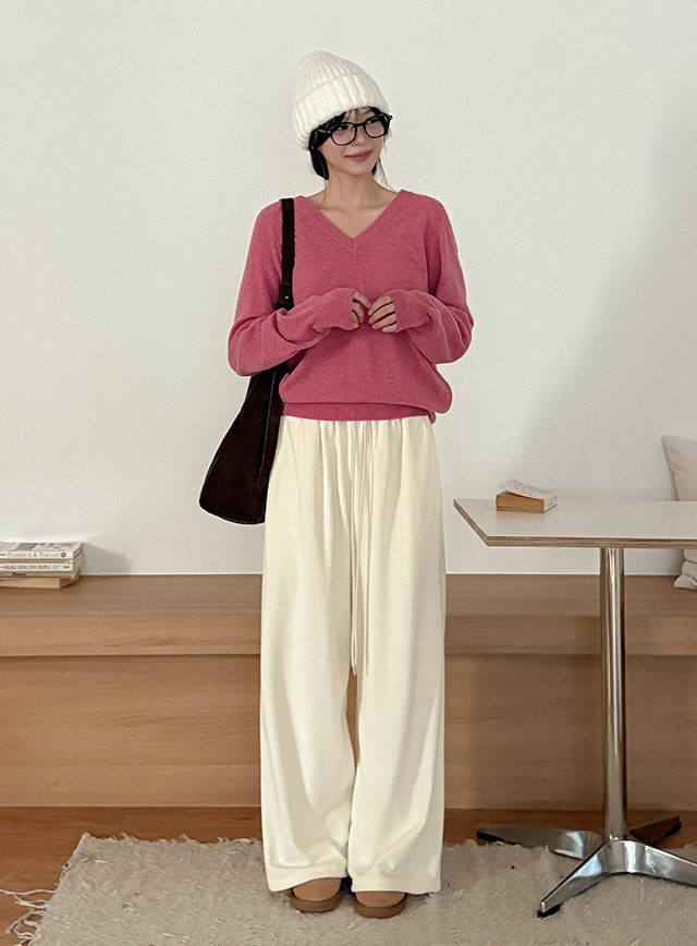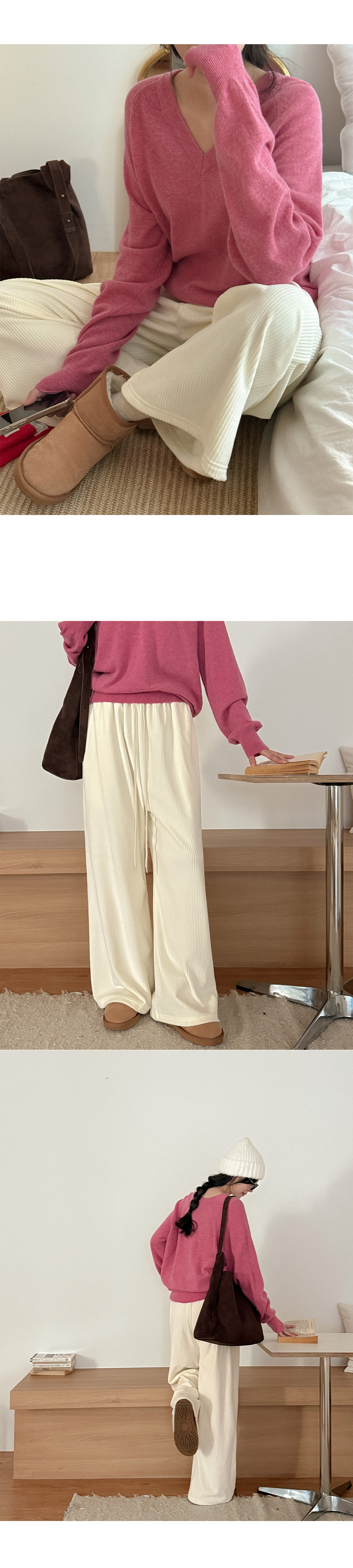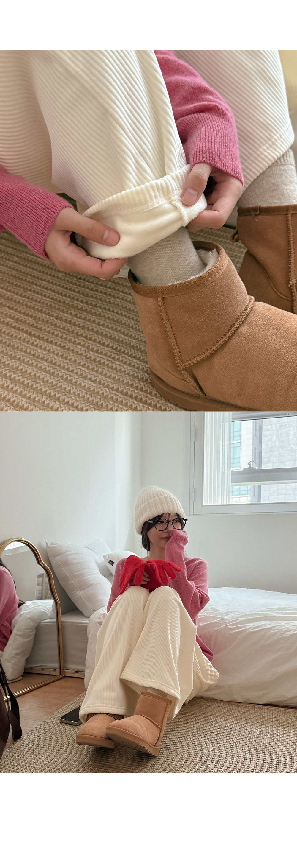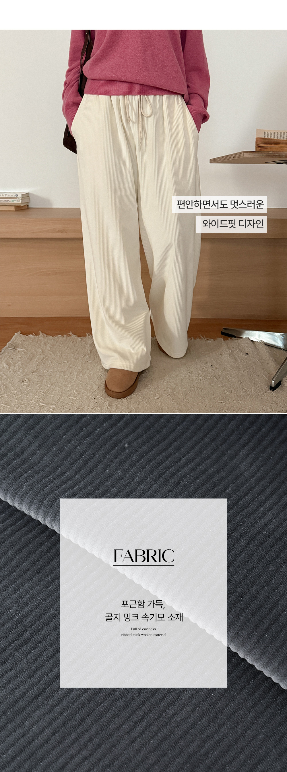 베노 リブ編み ミンク 속기모 ワイド パンツ 84904