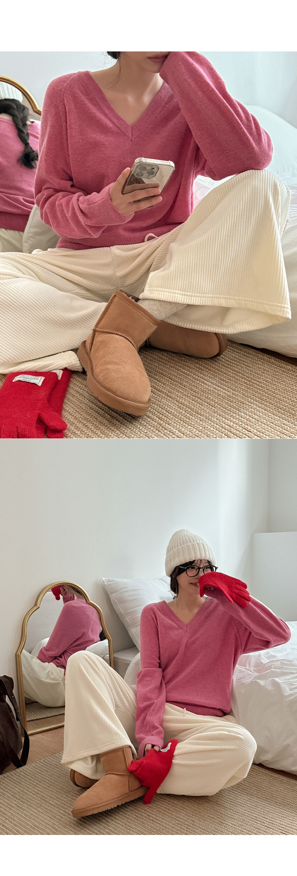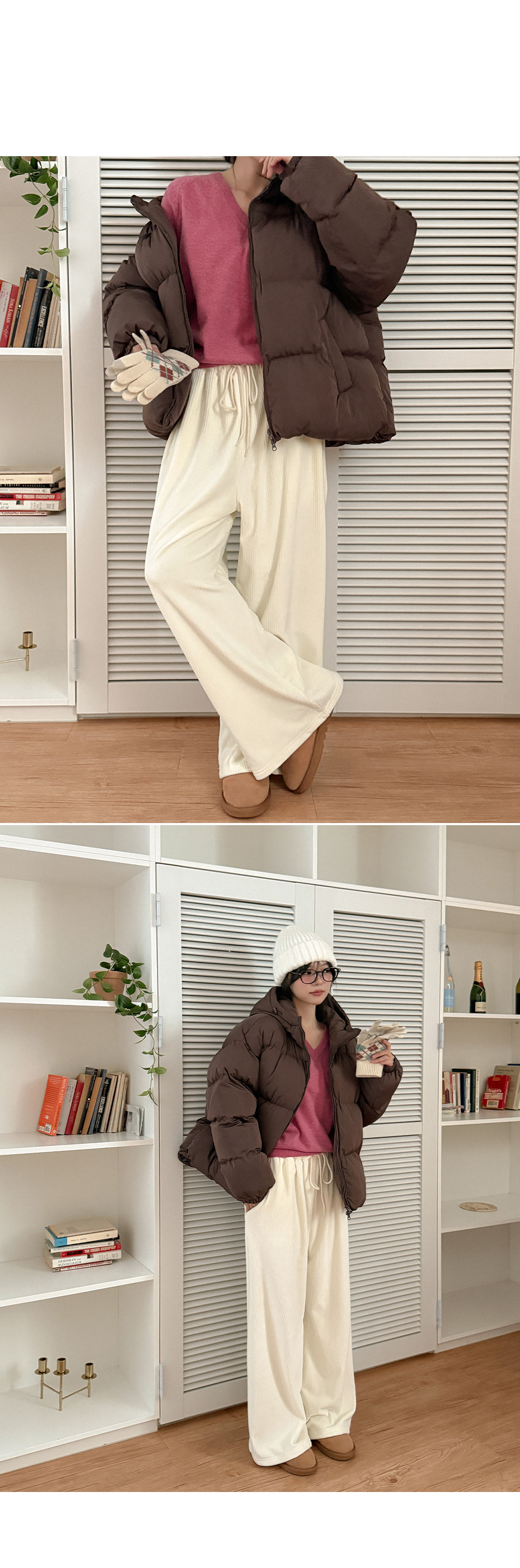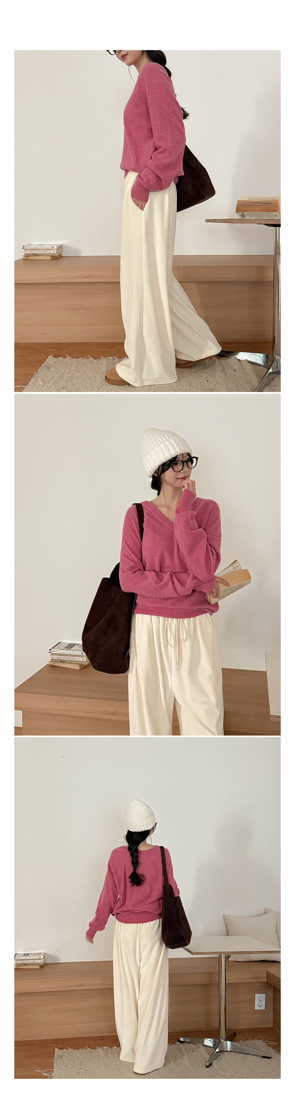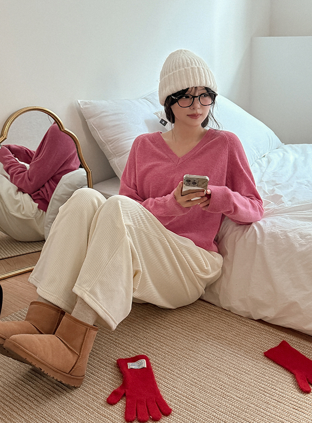 베노 リブ編み ミンク 속기모 ワイド パンツ 84904