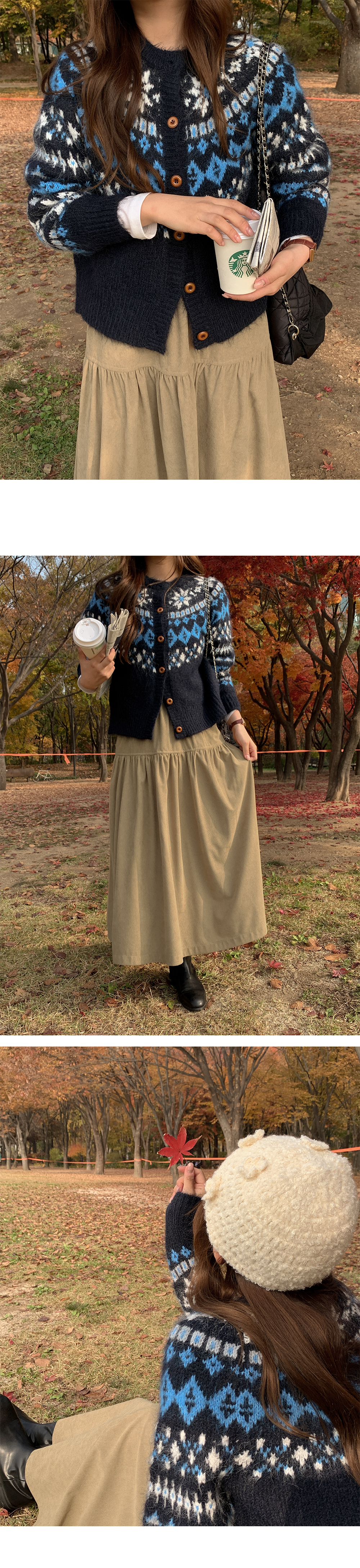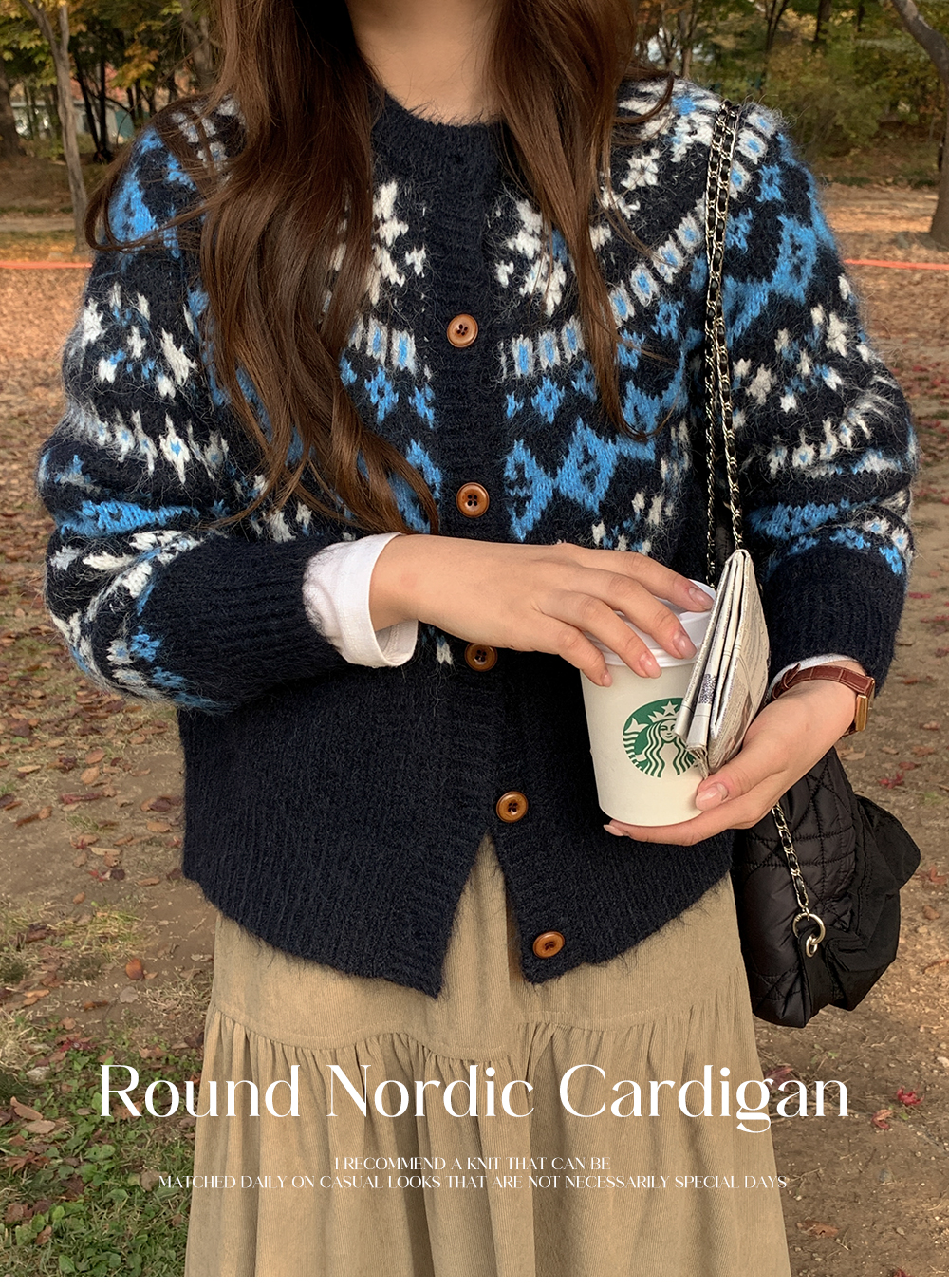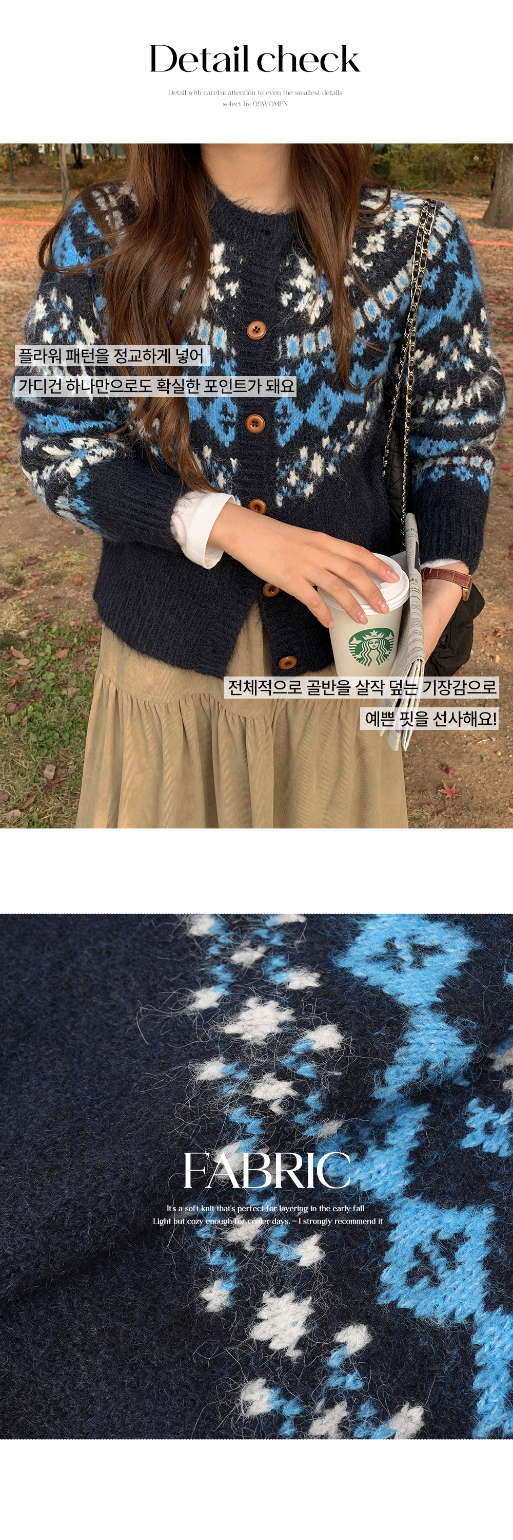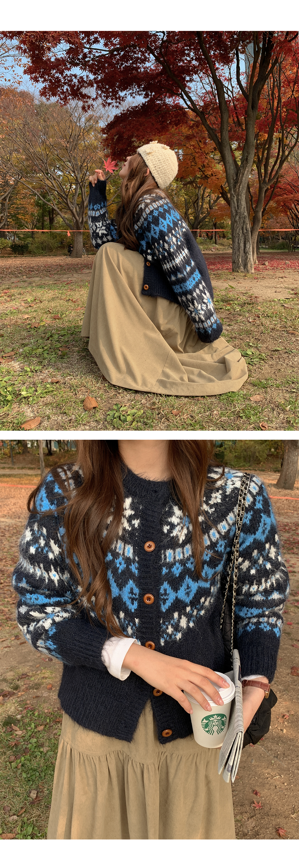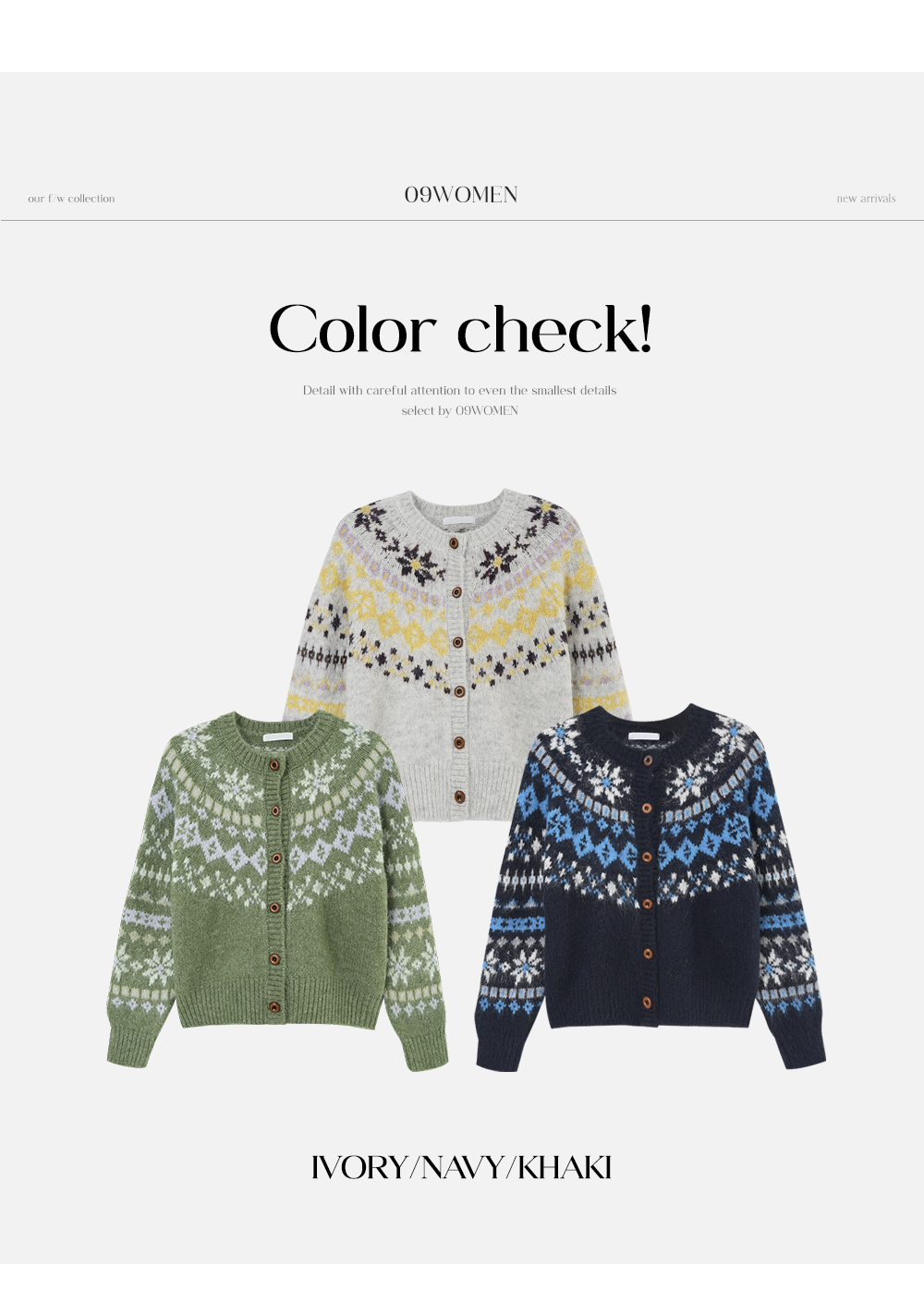 겨울 분위기를 가장 예쁘게 담은 스노우 노르딕가디건이에요