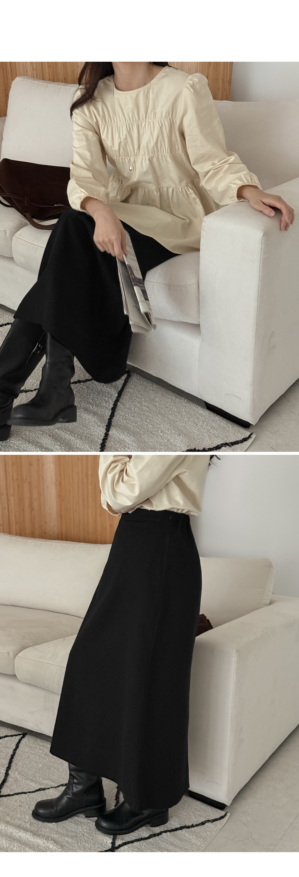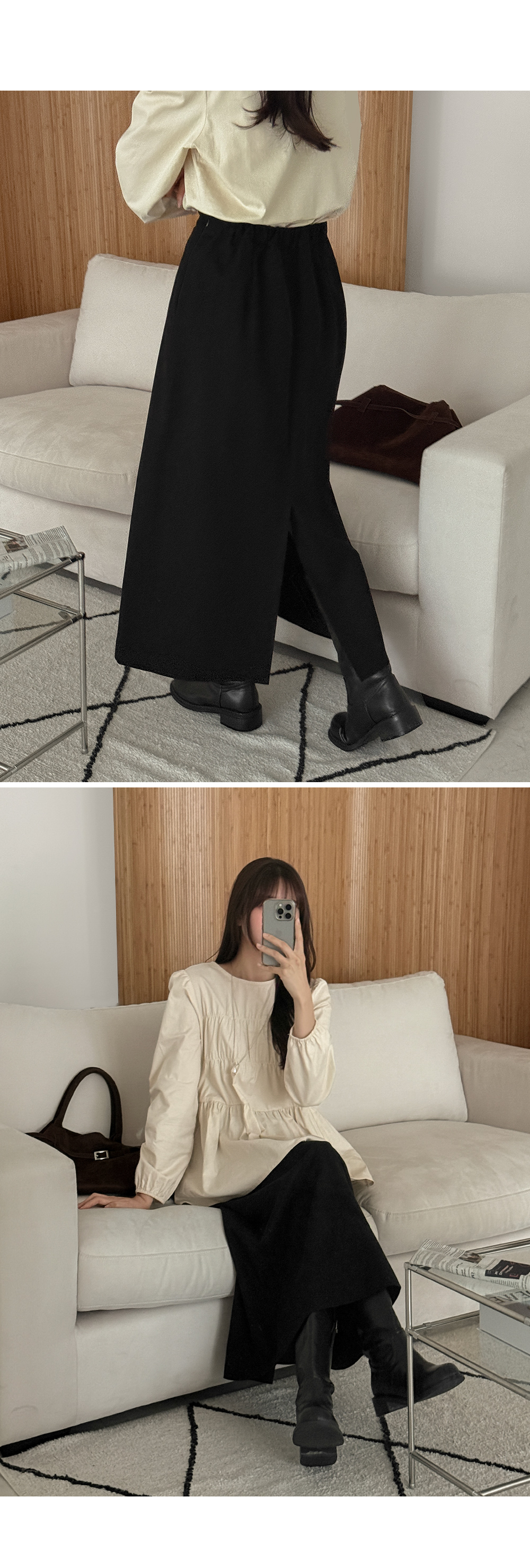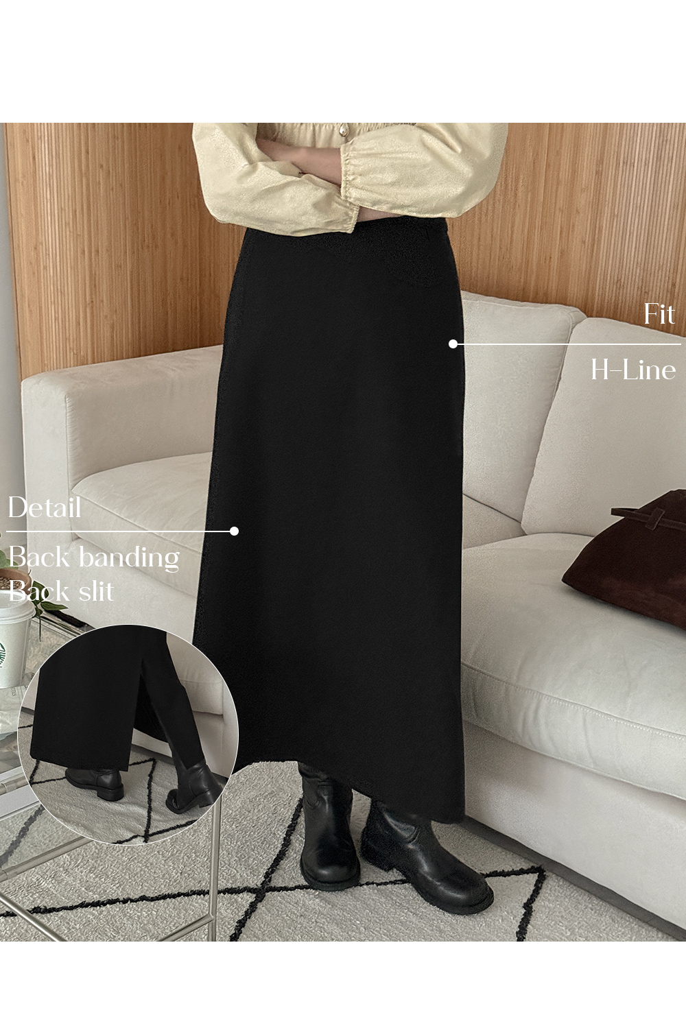 편안함까지 챙긴 뒷밴딩 H라인 롱 스커트