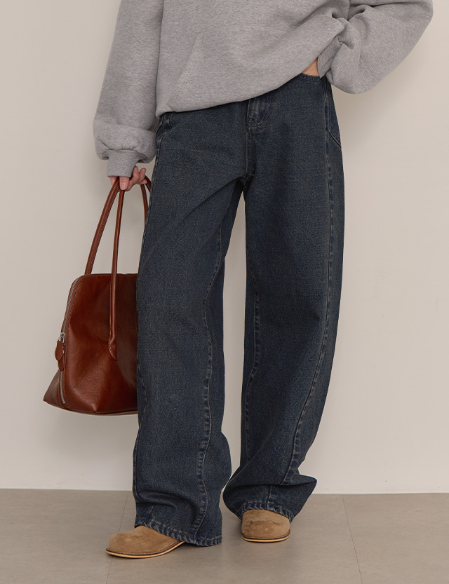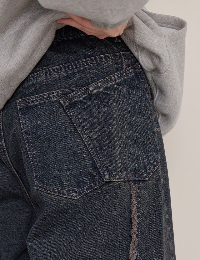 페이티 뒷밴딩 ダブル 포켓 ワイド デニム パンツ 85002