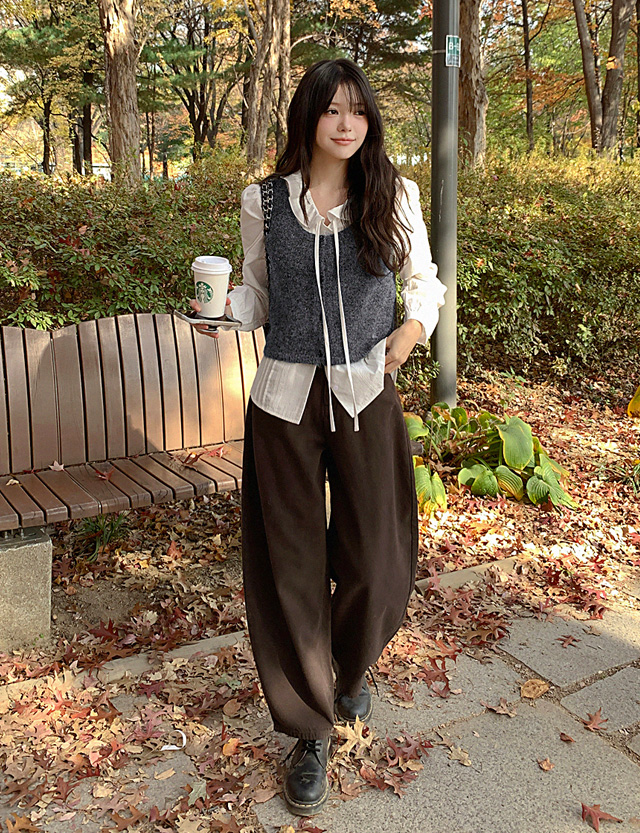 쁘띠앙 クロップド ニット ベスト 85026