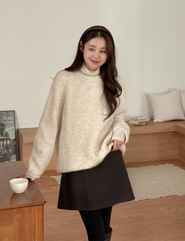 제앤제 ルーズフィット 포근 ウール ラウンド ニット 85037