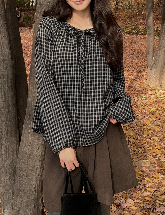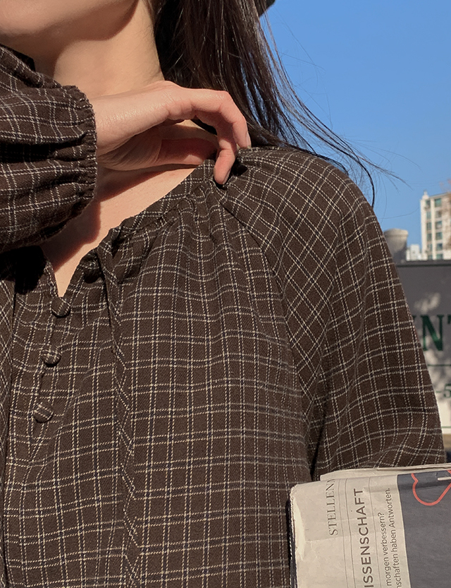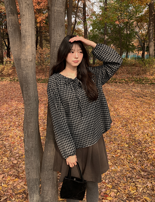 체크 간격이 잔잔해서 과하지 않게, 은은하게 페미닌한 무드를 살려줘요.