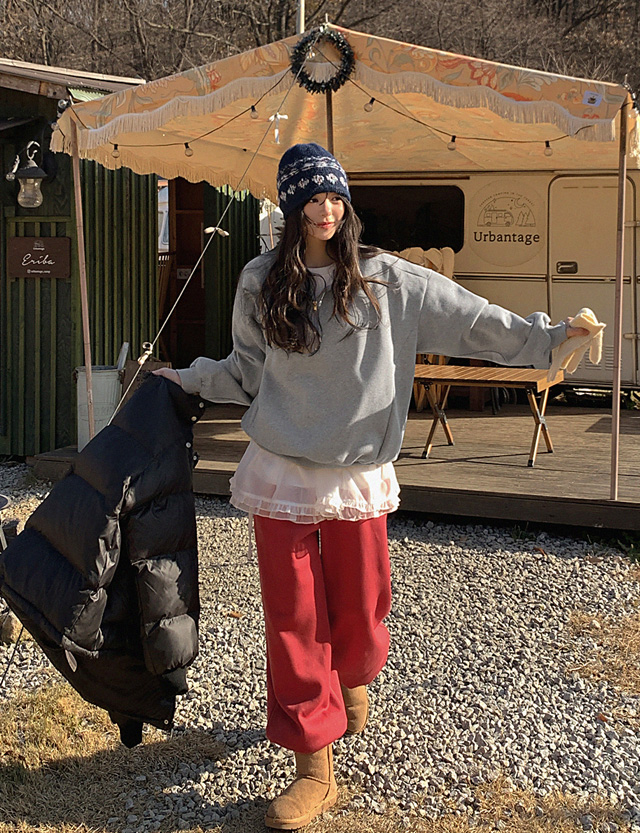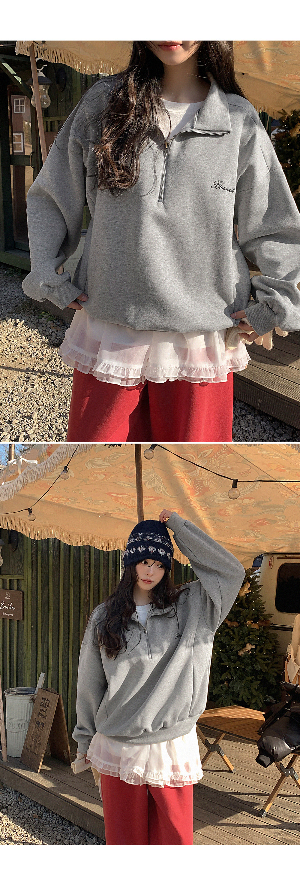 • 블루닛 刺繍 アノラック 起毛 ルーズフィット スウェット 85066
