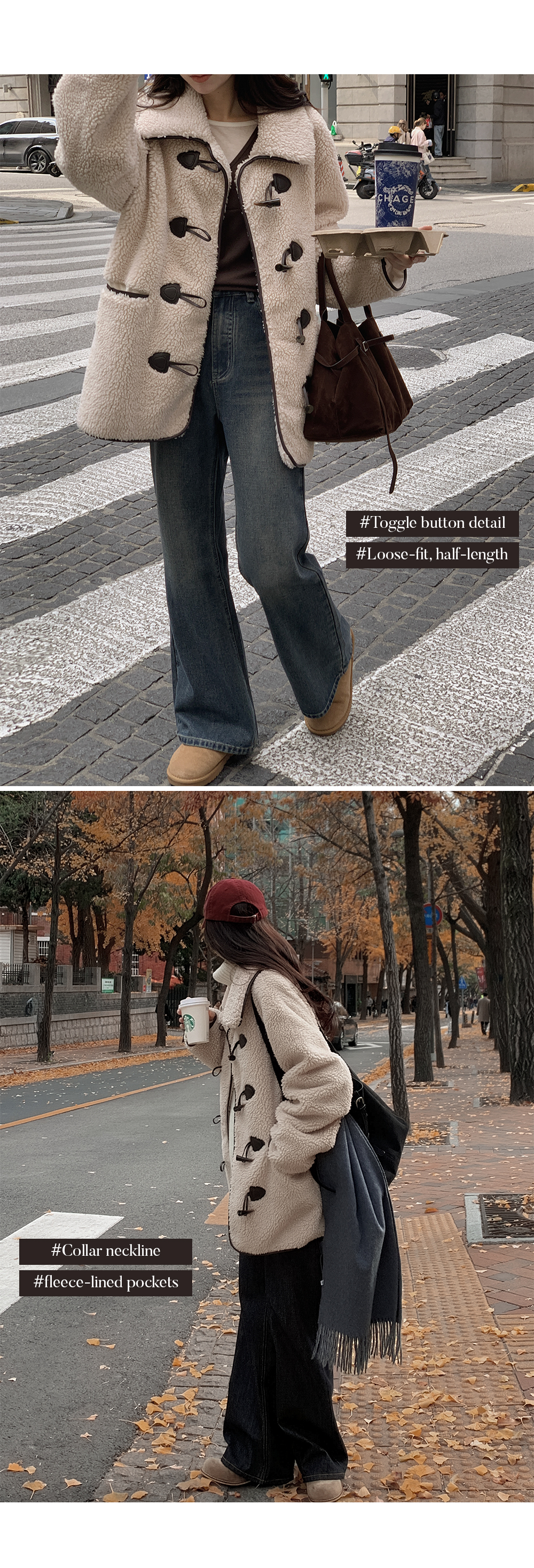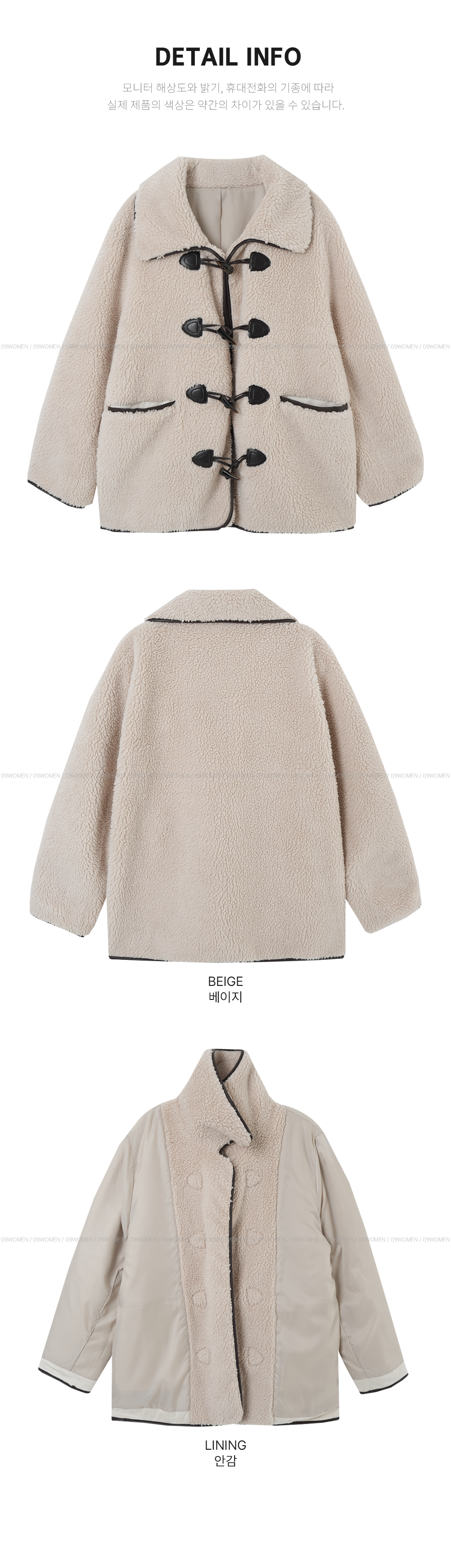 앞판에는 고급스러운 토글 단추 디테일을 더해