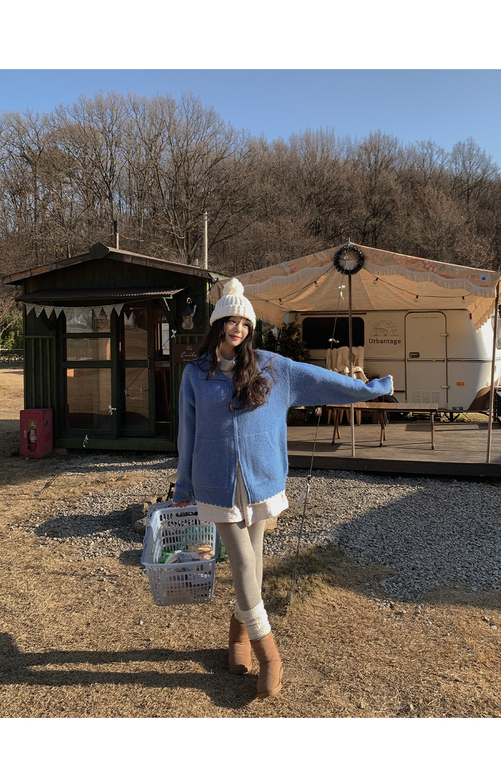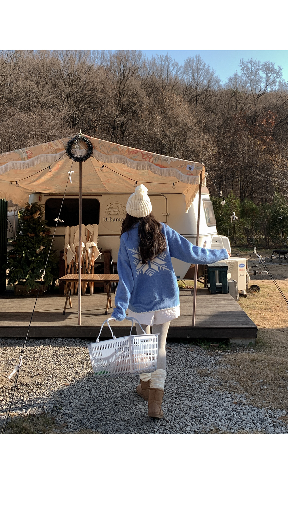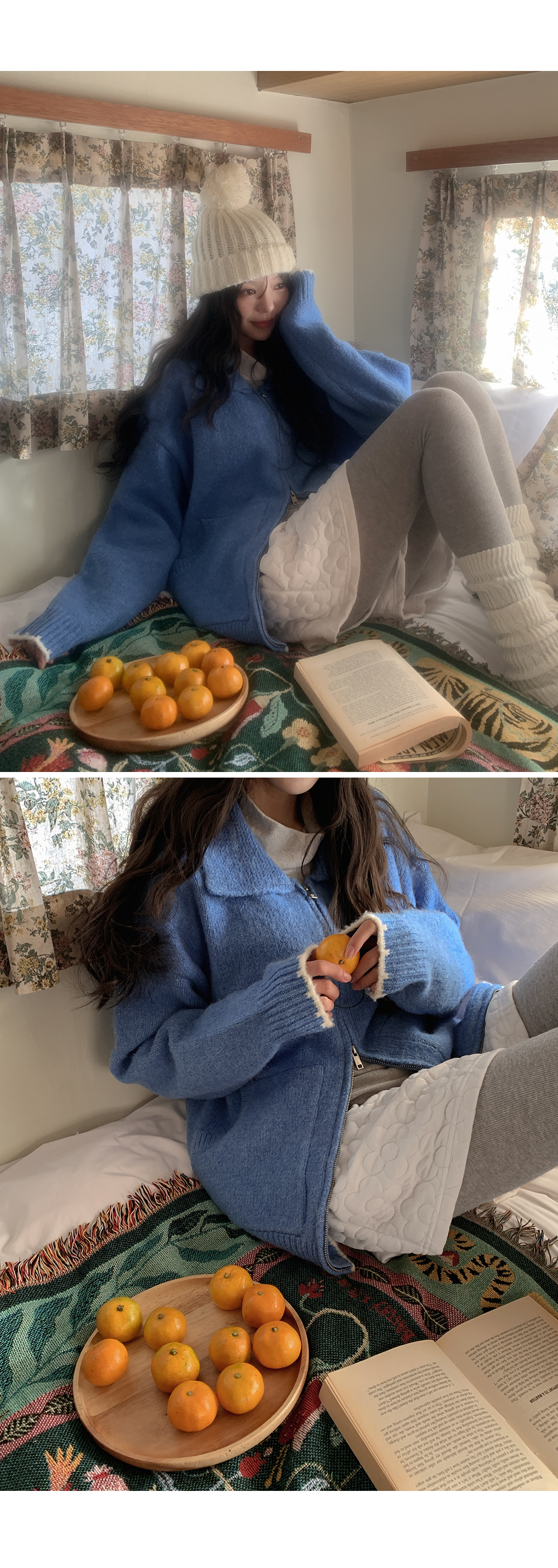 • 하라이 ルーズフィット 雪花 ウール ニット ジップアップ 85019