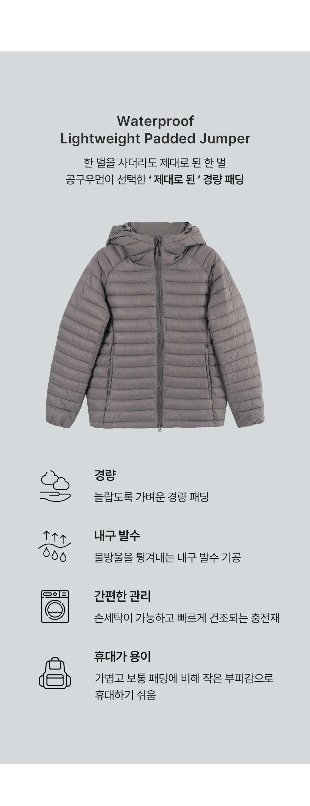 [엠디픽] 뚜뚯 2way 생활방수 웰론 フード  경량 バディング 85409