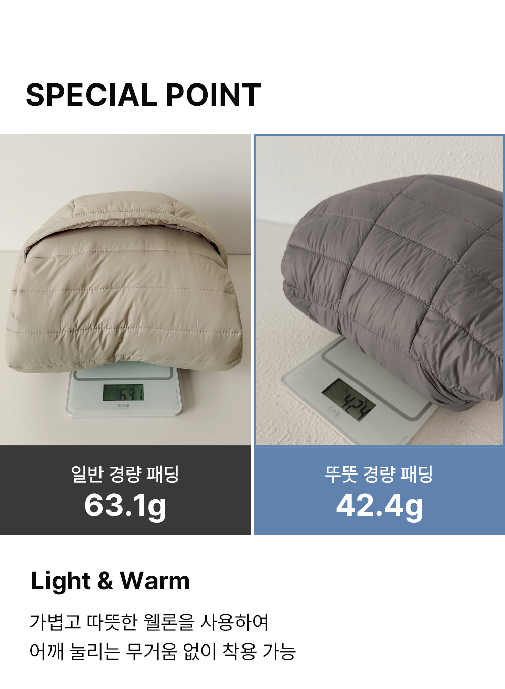 입는 순간 부담 없이 가벼운 무게감이 느껴지면서도