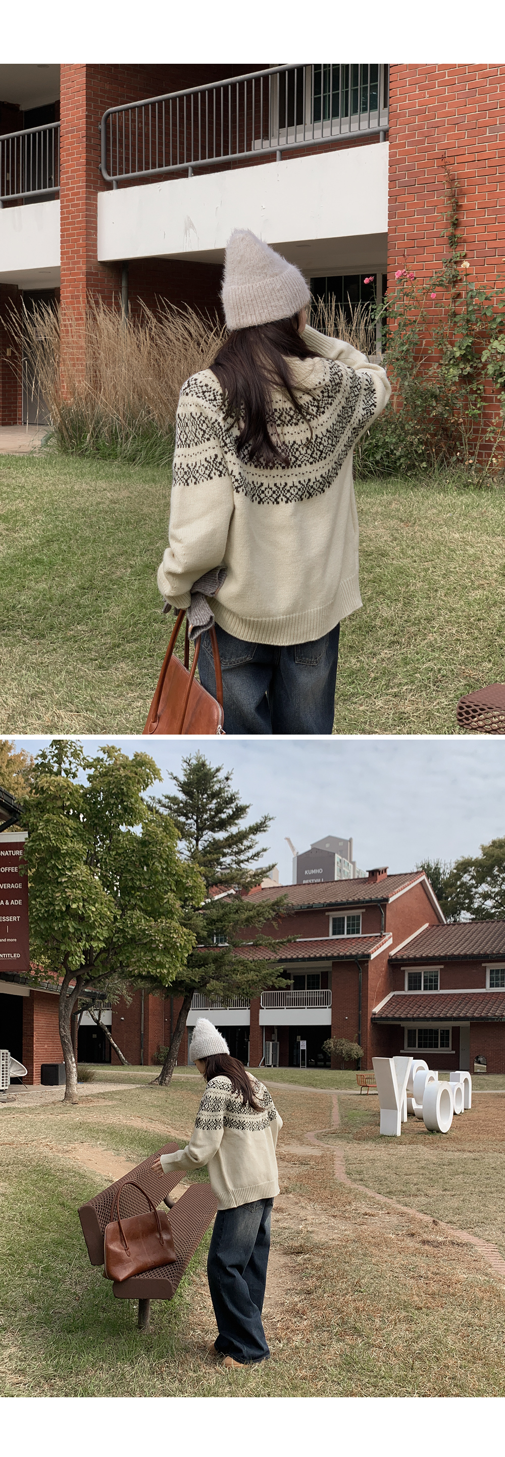 멘숀 ルーズフィット ノルディック ニット ジップアップ 84746